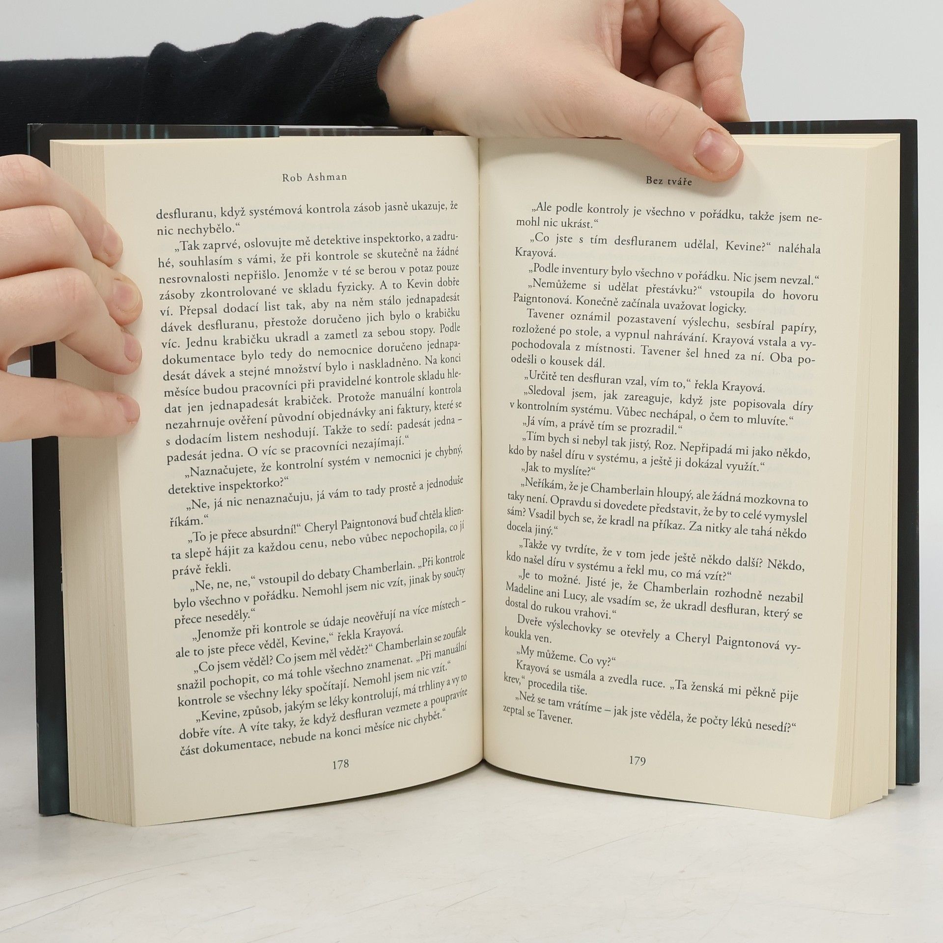 Inspektorka Rosalind Krayová přežila brutální napadení nožem, při kterém zemřel její manžel. Po čase se vrací do práce, kde jí přidělí vyšetřování případu sériového vraha. Jenže tento pachatel je jiný: nejenže připravuje své oběti o život, on si chce přivlastnit i jejich identitu. A ačkoli vraždy působí nahodile, zabiják si své oběti přepečlivě vybírá. Krayová bojuje se svým nadřízeným i s vlastními démony, což ji vnitřně ničí. Pomalu však získává schopnost přemýšlet jako pachatel a její postřehy přinesou několik děsivých odhalení, která zásadně změní pohled na vyšetřovaný případ. Pak ale stačí jediný přešlap a vše se jí začne sypat pod rukama. Podaří se jí přesto najít vraha a přežít? Protože pravda je blíž, než si dovede představit… Bez tváře je první knihou z nové detektivní série, která potěší čtenáře Angely Marsonsové či Patricie Gibneyové.