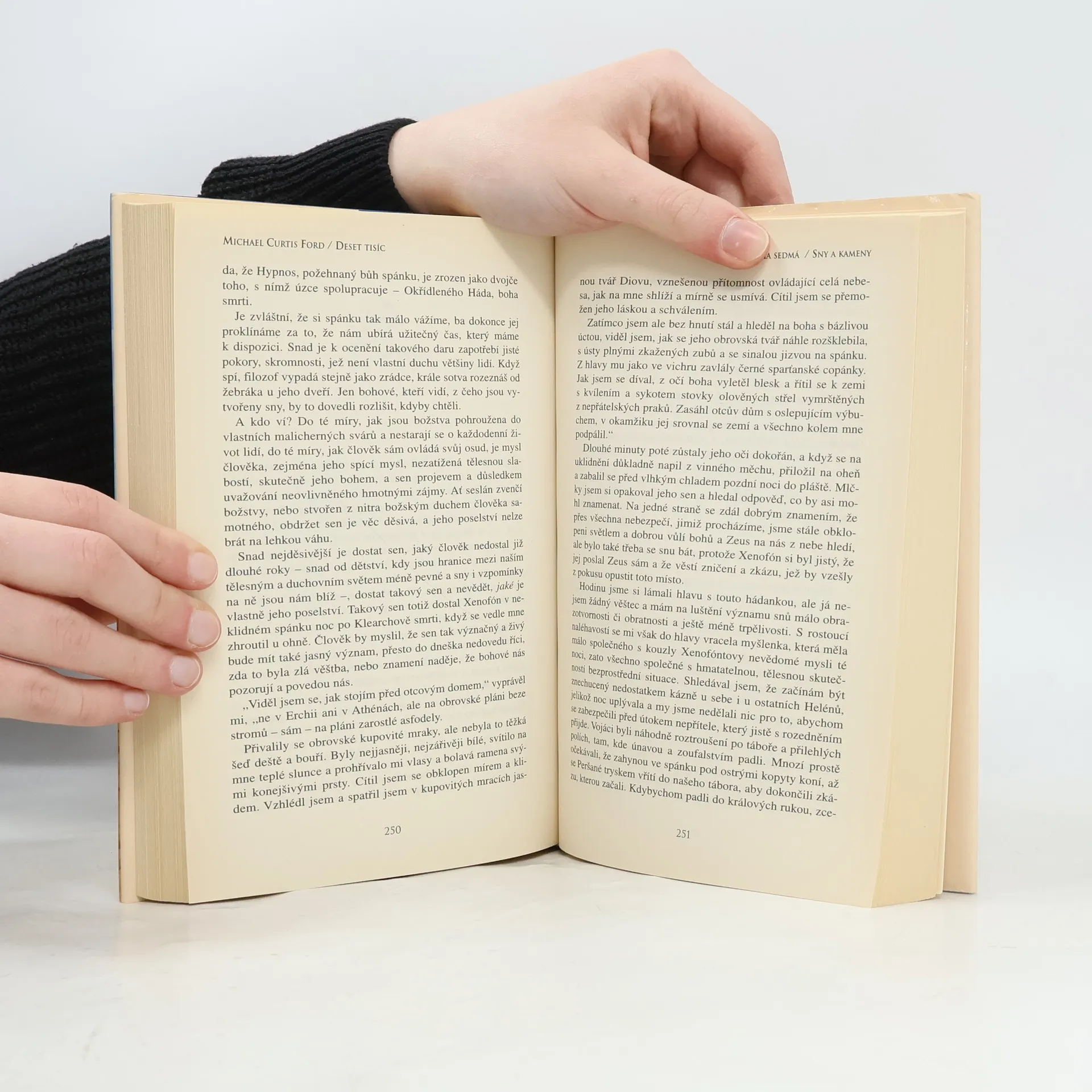 Slavný příběh, který jako první zaznamenal v knize Anabaze sám Xenofón, inspiroval amerického překladatele Michaela Curtise Forda k napsání neobyčejně zralé prvotiny, která strhujícím způsobem líčí dobu, prostředí antického Řecka, Persie i primitivních horských národů. V roce 404 př. n. l. skončila válka mezi nejmocnějšími řeckými státy porážkou Athén a vítězstvím Sparty, což zanechalo mnoho nezaměstnaných a nespokojených profesionálních vojáků. Mladší bratr perského krále Kýros se rozhodl využít jejich vojenských kvalit k převzetí vlády v Perské říši. K tažení se připojí i mladý athénský filozof a voják Xenofón. Deset tisíc řeckých žoldnéřů se vydává na strastiplnou cestu přes Syrskou poušť na Babylon, kde se utká s armádou Peršanů. Ačkoli Řekové v bitvě u Kúnax zvítězí, jejich armáda utrpí pohromu a ocitnou se sami mezi nepřáteli uprostřed Perské říše. Snaží se probít tisíc kilometrů na sever k řeckým osadám u Černého moře. Vůdcové jsou zrazeni a povražděni, a tak se vedení ujímá nezkušený, ale statečný Xenofón, který dokáže pozvednout morálku mužstva a čelit útokům pronásledujícího perského vojska i nepřátelských domorodých kmenů. Přestože jsou zubožení, ranění a hladovějící, přežijí krutou zimu a dostanou se na pobřeží Černého moře.
