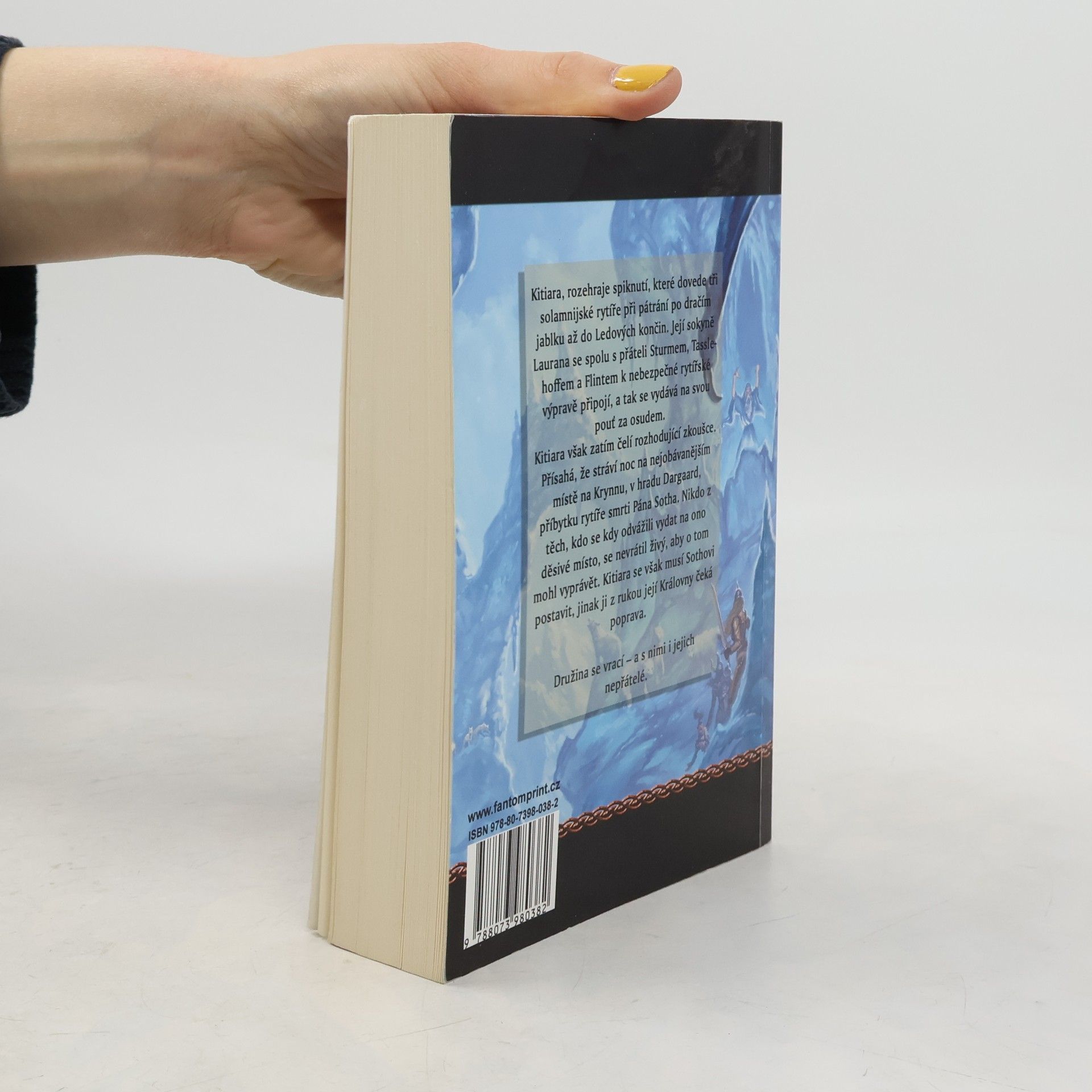 2. díl série: DragonLance – Ztracené kroniky (celkově 13. kniha) Kitiara rozehraje spiknutí, které dovede tři solamnijské rytíře při pátrání po dračím jablku až do Ledových končin. Její sokyně Laurana se spolu s přáteli Sturmem, Tasslehoffem a Flintem k nebezpečné rytířské výpravě připojí, a tak se vydává na svou pouť za osudem. Kitiara však zatím čelí rozhodující zkoušce. Přísahá, že stráví noc na nejobávanějším místě na Krynnu, v hradu Dargaard, příbytku rytíře smrti Pána Sotha. Nikdo z těch, kdo se kdy odvážili vydat na ono děsivé místo, se nevrátil živý, aby o tom mohl vyprávět. Kitiara se však musí Sothovi postavit, jinak ji v rukou její Královny čeká poprava. Družina se vrací – a s nimi i jejich nepřátelé. Jistě všichni znáte Kroniky a jistě nejednoho z vás napadlo, že ne všechny události a osudy hrdinů jsou v nich objasněny. Právě tato „bílá" místa mapují Ztracené kroniky.