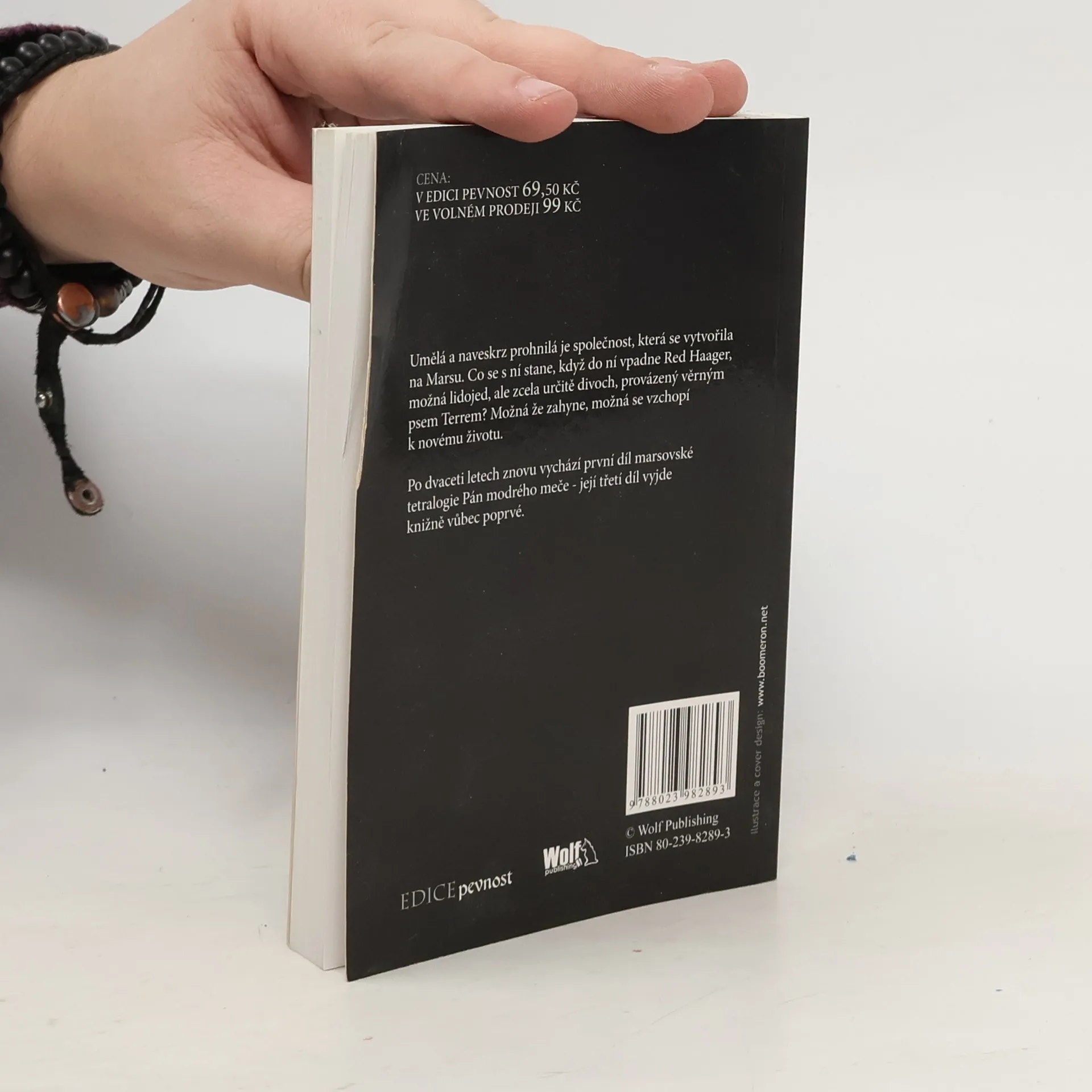Umělá a naveskrz prohnilá je společnost, která se vytvořila na Marsu. Co se s ní stane, když do ní vpadne Red Haager, možná lidojed, ale zcela určitě divoch, provázený věrným psem Terrem? Možná že zahyne, možná se vzchopí k novému životu. Po dvaceti letech znovu vychází první díl marsovské tetralogie Pán modrého meče.