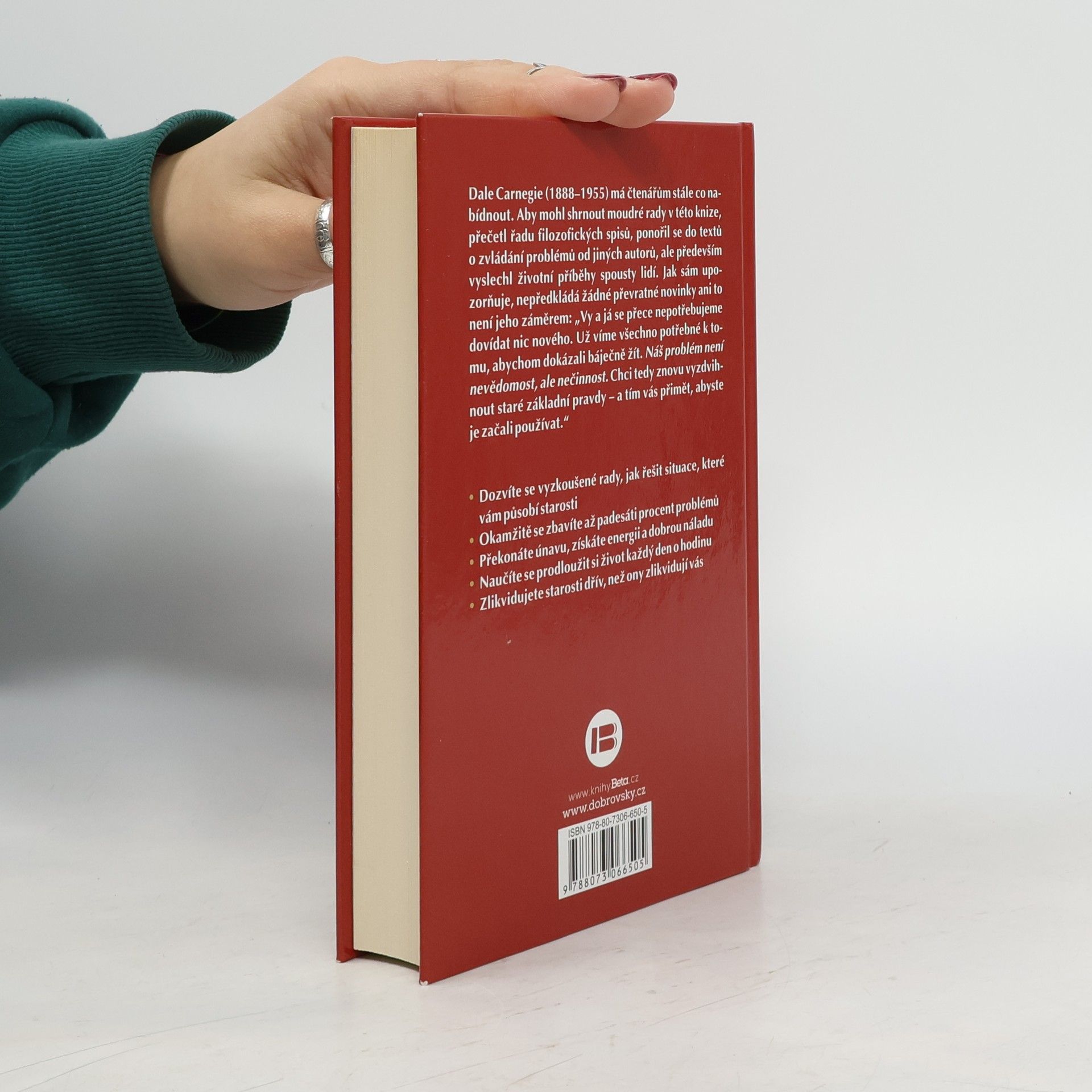 Dale Carnegie, slavný učitel osobního rozvoje z první poloviny dvacátého století, má čtenářům stále co nabídnout. Aby mohl shrnout moudré rady v této knize, přečetl řadu filozofických spisů, ponořil se do textů o zvládání problémů od jiných autorů, ale především vyslechl životní příběhy spousty lidí. Jak sám upozorňuje, nepředkládá žádné převratné novinky ani to není jeho záměrem: „Vy a já se přece nepotřebujeme dovídat nic nového. Už víme všechno potřebné k tomu, abychom dokázali báječně žít. Náš problém není nevědomost, ale nečinnost. Chci tedy znovu vyzdvihnout staré základní pravdy – a tím vás přimět, abyste je začali používat.“