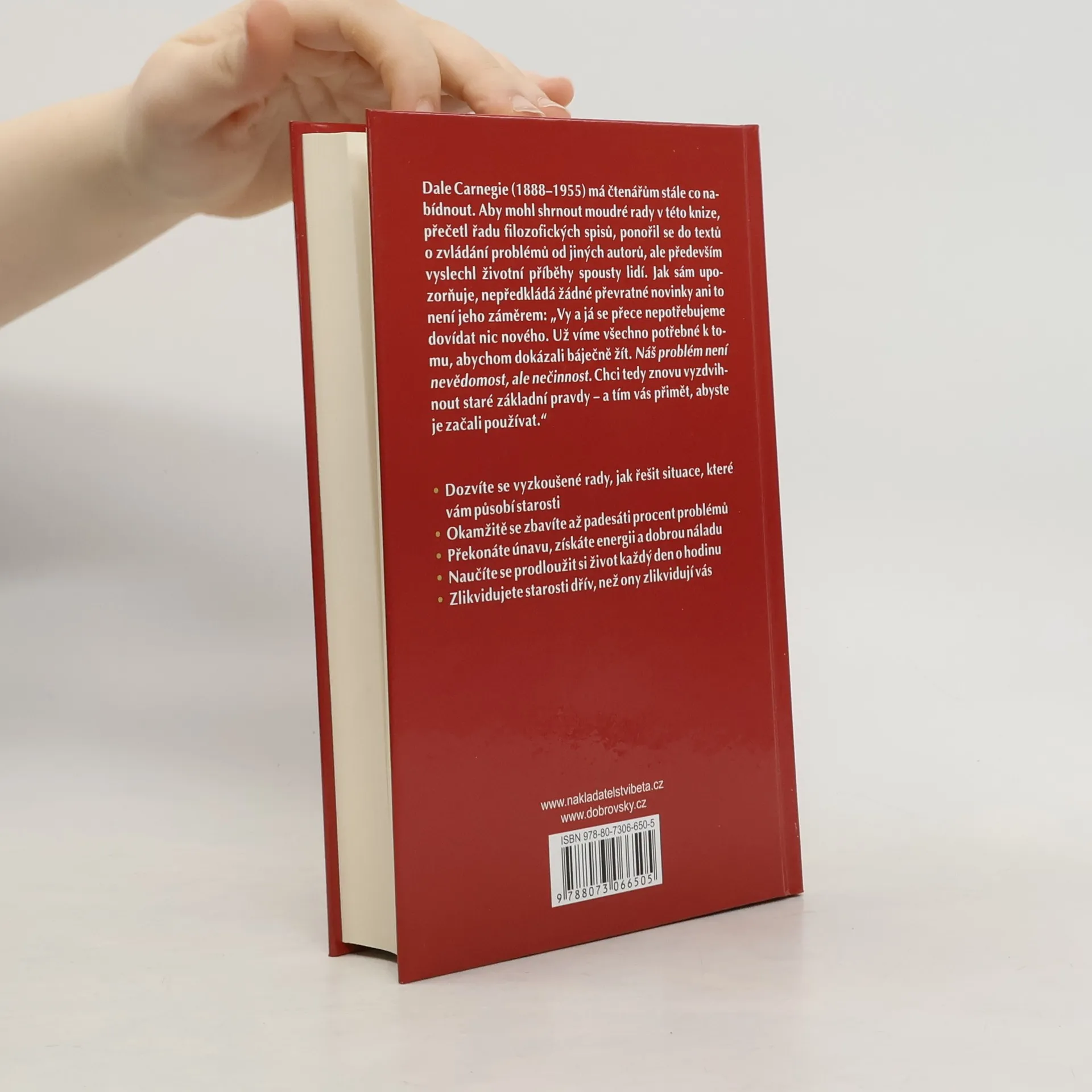 Dale Carnegie, slavný učitel osobního rozvoje z první poloviny dvacátého století, má čtenářům stále co nabídnout. Aby mohl shrnout moudré rady v této knize, přečetl řadu filozofických spisů, ponořil se do textů o zvládání problémů od jiných autorů, ale především vyslechl životní příběhy spousty lidí. Jak sám upozorňuje, nepředkládá žádné převratné novinky ani to není jeho záměrem: „Vy a já se přece nepotřebujeme dovídat nic nového. Už víme všechno potřebné k tomu, abychom dokázali báječně žít. Náš problém není nevědomost, ale nečinnost. Chci tedy znovu vyzdvihnout staré základní pravdy – a tím vás přimět, abyste je začali používat.“