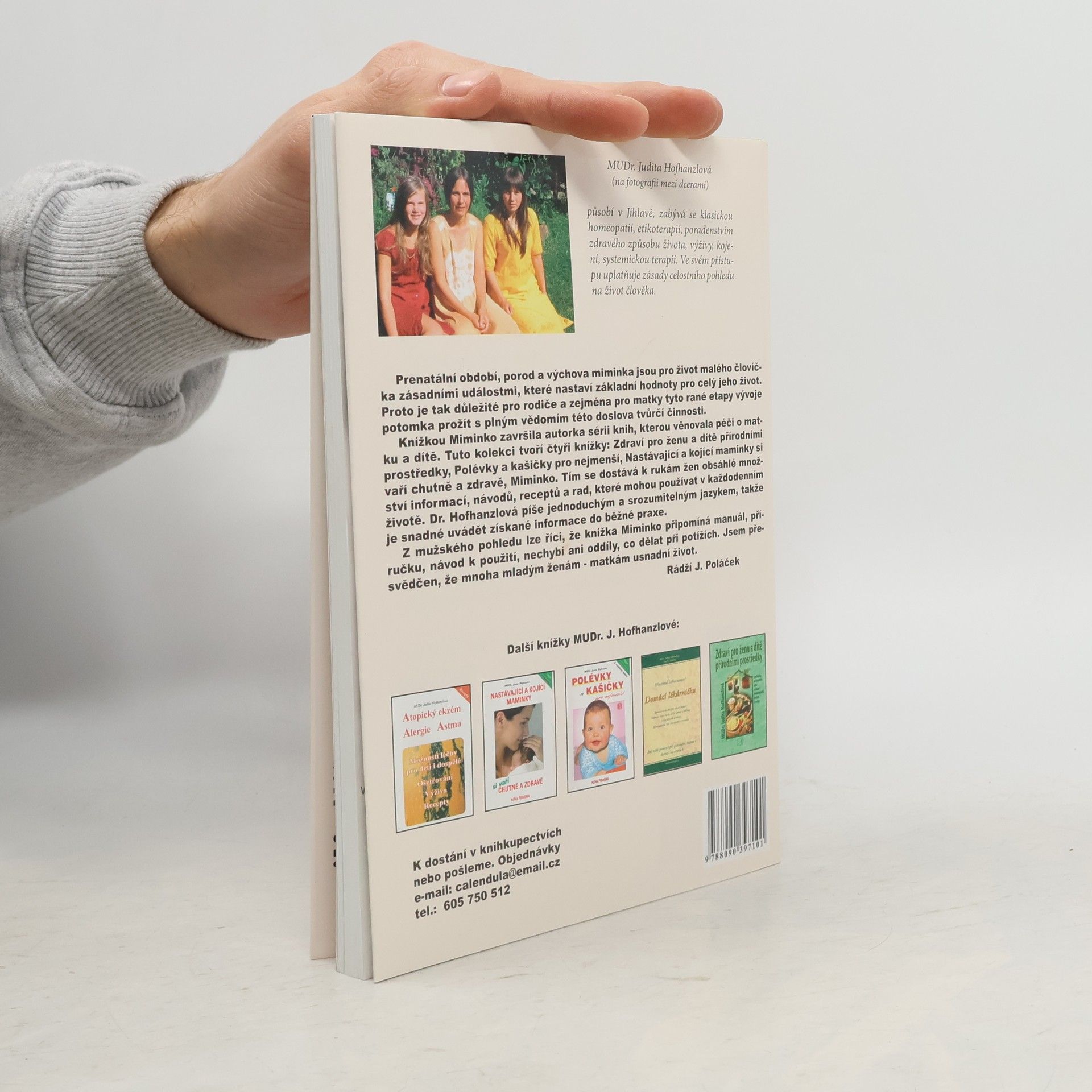 Prenatální období, porod, péče rodičů a výchova miminka jsou pro život malého človíčka zásadními událostmi, které nastaví základní hodnoty pro celý jeho život. Proto je tak důležité pro rodiče a zejména pro matky tyto rané etapy vývoje potomka prožít s plným vědomím této doslova tvůrčí činnosti. Knížkou Miminko završila autorka sérii knih, kterou věnovala péči o matku a dítě. Tuto kolekci tvoří čtyři knížky: Zdraví pro ženu a dítě přírodními prostředky, Polévky a kašičky pro nejmenší, Nastávající a kojící maminky si vaří chutně a zdravě, Miminko. Tím se dostává k rukám žen obsáhlé množství informací, návodů, receptů a rad, které mohou používat v každodenním životě. ... celý text