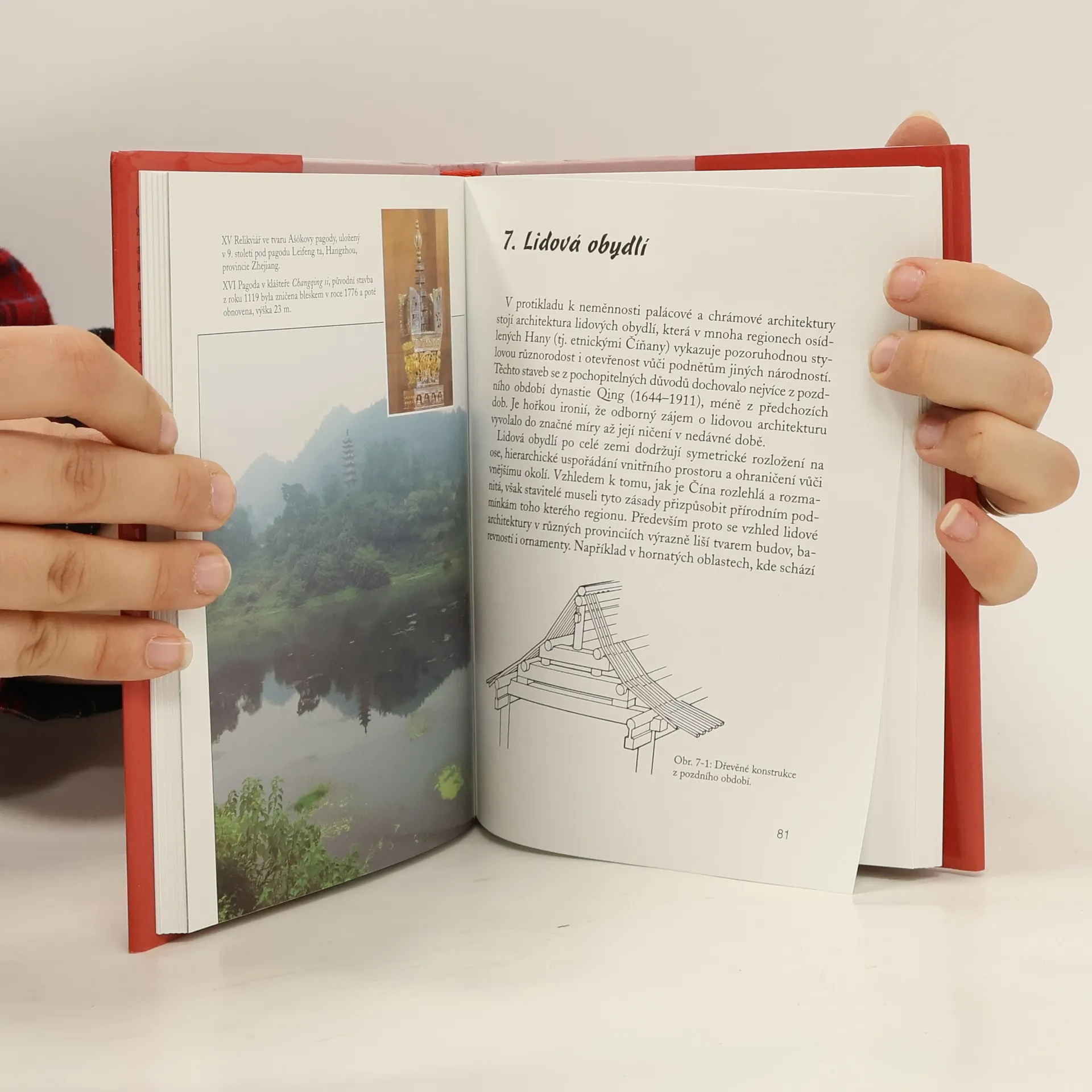 Cílem knihy je usnadnit čtenáři základní orientaci v čínské architektuře a umožnit mu zasvěceněji posoudit její krásu v době, kdy tato země přestává být nedostupnou a vzdálenou. Výklad se soustředí zejména na architekturu vybudovanou za vlády dynastií Ming a Čching (14. až 19. století), tedy na dobu, z níž pochází většina dochovaných památek. Starověku, na který se neoprávněně zužují představy o tradiční Číně, se autorka věnuje v první kapitole, v dalším textu se však vrací k některým starověkým koncepcím, které pozdější doby přejaly. Jejich dodržování vedlo k určité vývojové strnulosti, která zajímavě kontrastuje s proměnami evropské architektury. Jednotlivé kapitoly popisují rozličné typy čínských staveb obydlí, pagody, altánky, mosty, věnují se také uspořádání zahrad, klášterů, úředních areálů a paláců. Vytvořit si názornou představu čtenáři pomáhají četné kresby a plánky. ... celý text