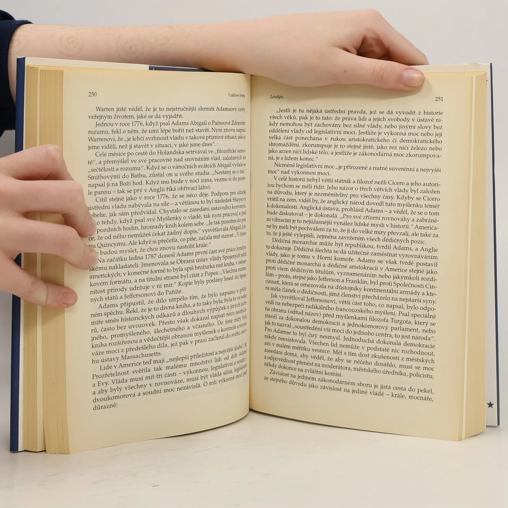 Životopis Johna Adamse, jednoho z otců zakladatelů Spojených států amerických a později jejich druhého prezidenta, se stal bestsellerem možná i proto, že je sestaven na základě jeho deníků a bohaté korespondence. John Adams, jeden z otců zakladatelů Spojených států amerických, dlouho stál ve stínu jiných významných osobností své doby, zejména George Washingtona a Thomase Jeffersona, přestože jeho životní osudy byly mimořádně zajímavé. Svou kariéru začal v Bostonu jako mladý, odvážný advokát. Stal se jedním z účastníků Kontinentálního kongresu ve Filadelfii, což byl zárodek budoucí americké samosprávy. Pomáhal prosadit Prohlášení nezávislosti, kterým se americké kolonie odtrhly od Velké Británie. Byl jedním z vůdců americké války za nezávislost, během níž působil též jako vyslanec ve Francii, v Holandsku a ve Velké Británii. Po návratu domů se stal Washingtonovým viceprezidentem a poté v pořadí druhým prezidentem Spojených států. Napsal řadu významných politických spisů; nejproslulejší je Ústava státu Massachusetts, která platí dodnes. Autor sestavil Adamsův životopis na základě jeho deníků a bohaté korespondence. Kniha se stala bestsellerem a podařilo se jí tak znovu vrátit Adamse na výsluní zájmu. Vzhledem k tomu, že nejde o suchopárně podanou historii, ale o čtení téměř dobrodružné, zaujme jistě i českého čtenáře.... celý text