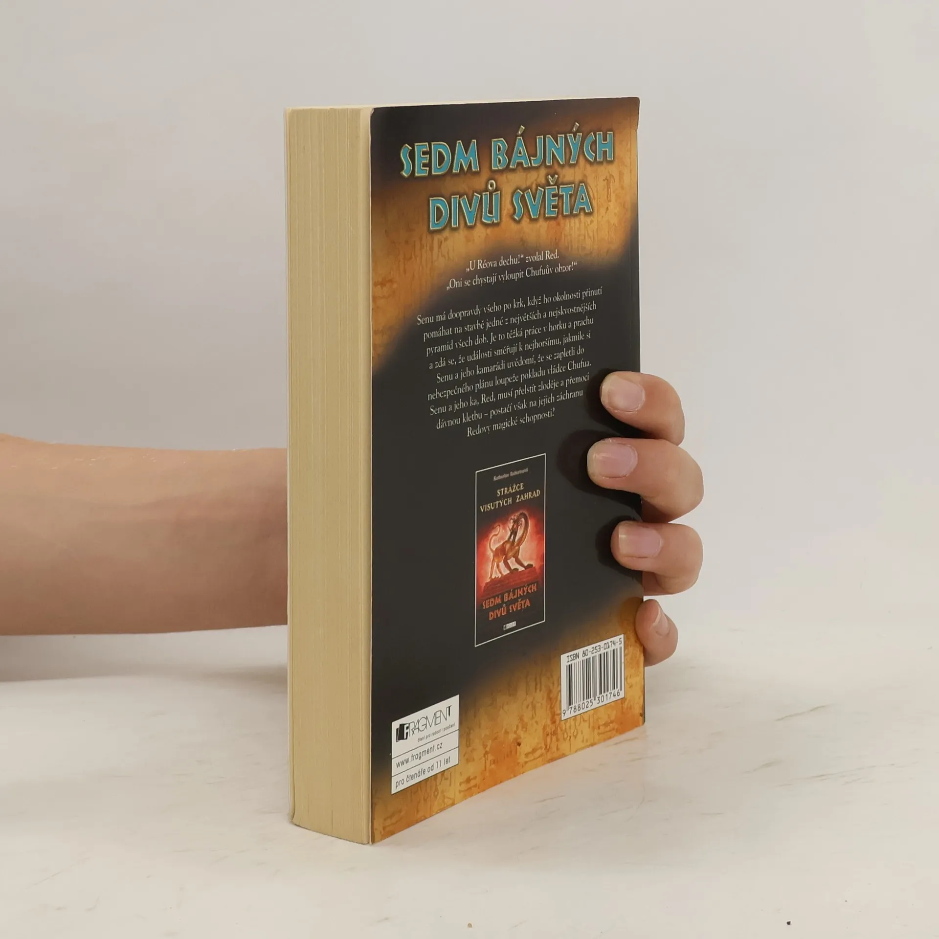 Senu má doopravdy všeho po krk, když ho okolnosti přinutí pomáhat na stavbě jedné z největších a nejskvostnějších pyramid všech dob. Je to těžká práce v horku a prachu a zdá se, že události směřují k nejhoršímu, jakmile si Senu a jeho kamarádi uvědomí, že se zapletli do nebezpečného plánu loupeže pokladu vládce Chufua. Senu a jeho ka, Red, musí přelstít zloděje a přemoci dávnou kletbu – postačí však na jejich záchranu Redovy magické schopnosti? Řada Sedm bájných divů světa vyvěrá z autorčina zájmu o starověké mýty, legendy a podivné tvory, kteří se v nich vyskytují. Raději než znovu omílat dobře známé pověsti se pokouší snoubit legendy s historií a zvlášť prozkoumávat mezery v dějinách, o nichž se toho zatím moc neví. V této řadě se setkáte se sedmi podivuhodnými mladými lidmi, kteří žili v dobách, kdy kouzlo a realita měly k sobě blíž než dnes – v dobách, jež zrodily fantastické příběhy.... celý text