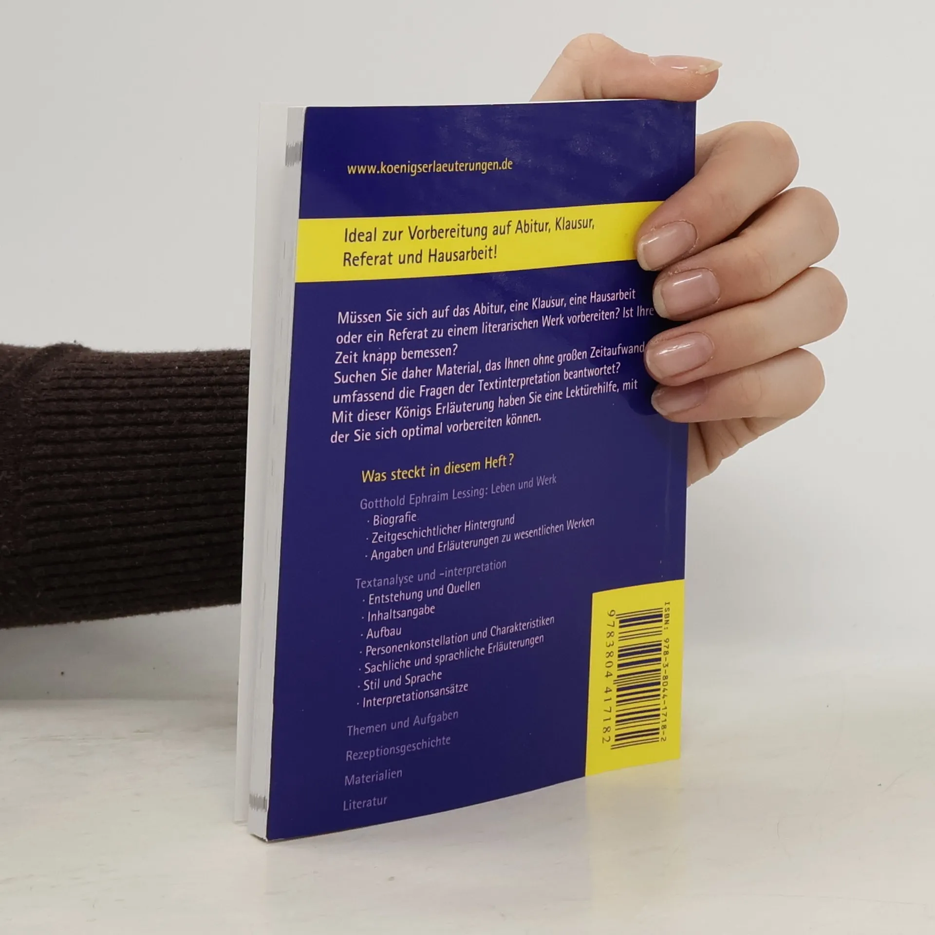 Königs Erläuterungen zu Gotthold Ephraim Emilia Galotti - Textanalyse und Interpretation mit ausführlicher Inhaltsangabe und AbituraufgabenIn einem Band bieten dir die neuen Königs Erläuterungen alles, was du zur Vorbereitung auf Referat, Klausur, Abitur oder Matura benötigst.Das spart Zeit bei der Vorbereitung!Alle wichtigen Infos zur Interpretation.- von der ausführlichen Inhaltsangabe über Aufbau, Personenkonstellation, Stil und Sprache bis zu Interpretationsansätzen- plus 4 Abituraufgaben mit Musterlösungen und 2 weitere zum kostenlosen Download. sowohl kurz als auch ausführlich.- Die Schnellübersicht fasst alle wesentlichen Infos zu Werk und Autor und Analyse zusammen.- Die Kapitelzusammenfassungen zeigen dir das Wichtigste eines Kapitels im Überblick - ideal auch zum Wiederholen.- Das Stichwortregister ermöglicht dir schnelles Finden wichtiger Textstellen.. und klar strukturiert.- Ein zweifarbiges Layout hilft dir Wesentliches einfacher und schneller zu erfassen.- Die Randspalte mit Schlüsselbegriffen ermöglichen dir eine bessere Orientierung.- Klar strukturierte Schaubilder verdeutlichen dir wichtige Sachverhalte auf einen Blick.. mit vielen zusätzlichen Infos zum kostenlosen Download.
