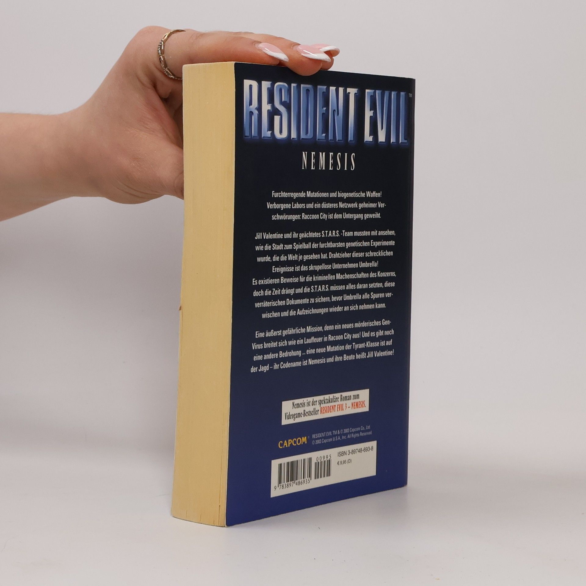 Die S. T. A. R. S.-Agentin Jill Valentine mußte mit ansehen, wie die genetischen Horrorzüchtungen der Umbrella Corporation die Stadt Raccoon City in eine wahre Hölle verwandelten. Doch damit nicht genug! Der neueste Prototyp aus den Umbrella Labors ist auf der Jagd. Sein Codename ist „Nemesis“ und seine Beute heißt Jill Valentine. Nemesis ist der spektakuläre Roman zum Videogame-Bestseller RESIDENT EVIL 3 - Nemesis.