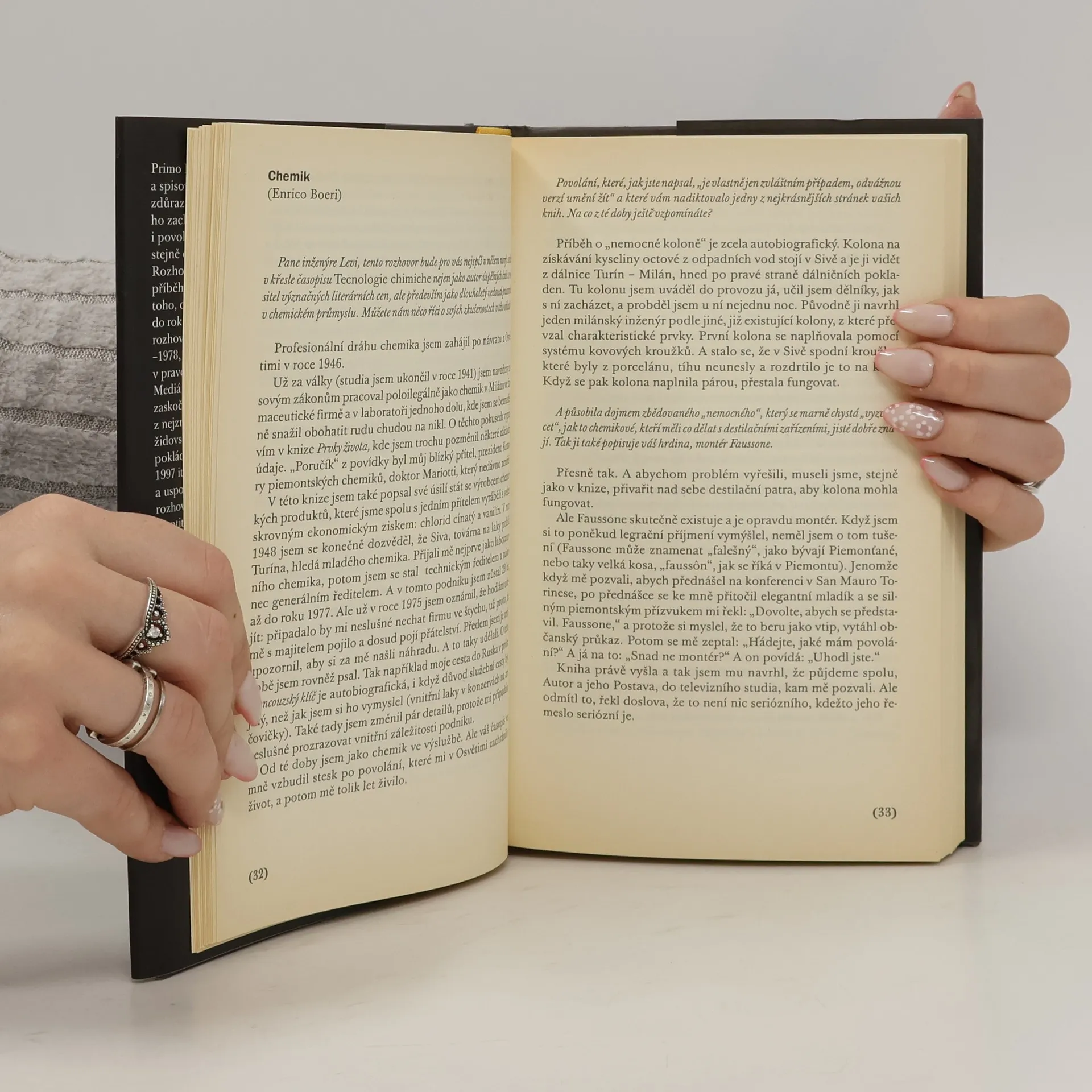 Osud připravil Primo Levimu, racionálně uvažujícímu vědci-chemikovi, v soukromí plachému a odtažitému muži, prazvláštní úděl: udělil mu dar slova, dar vypovídat o zkušenostech z Osvětimi. Postupem doby, kdy se Levi stává veřejnou osobností a jedním z nejznámějších světových židovských spisovatelů, se ho novináři začínají detailně vyptávat na jeho život a práci, na pobyt v koncentračním táboře, na vztah k judaismu a politice, ale i na mnohem subtilnější témata: problém viny a trestu, odpuštění, nenávisti, víry v Boha. Nejdůležitější rozhovory Primo Leviho, ať už poskytnuté novinám nebo rozhlasu, nyní vycházejí knižně, rozčleněné do pěti tematických oddílů. Vybral, uspořádal a poznámkami opatřil Marco Belpoliti.