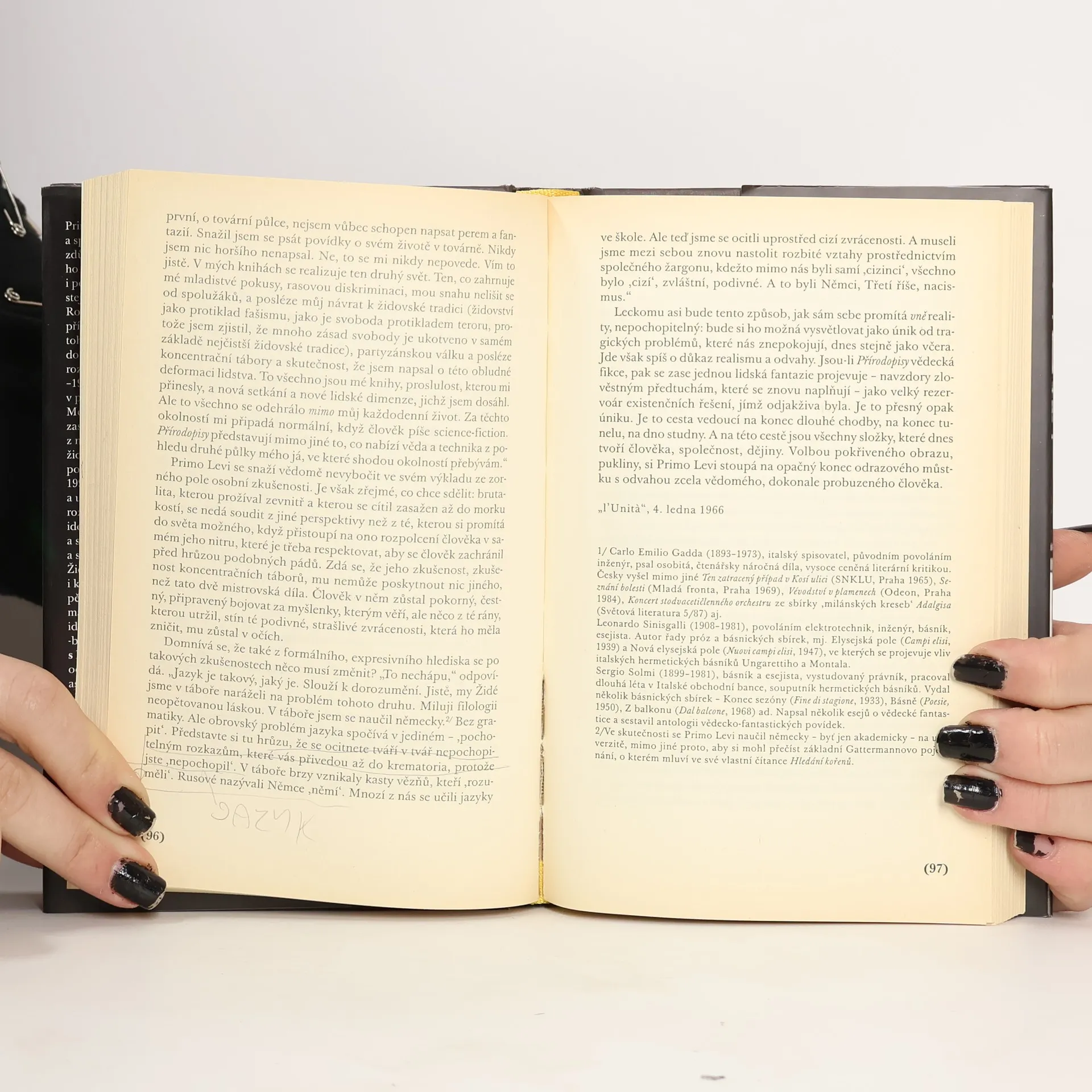Osud připravil Primo Levimu, racionálně uvažujícímu vědci-chemikovi, v soukromí plachému a odtažitému muži, prazvláštní úděl: udělil mu dar slova, dar vypovídat o zkušenostech z Osvětimi. Postupem doby, kdy se Levi stává veřejnou osobností a jedním z nejznámějších světových židovských spisovatelů, se ho novináři začínají detailně vyptávat na jeho život a práci, na pobyt v koncentračním táboře, na vztah k judaismu a politice, ale i na mnohem subtilnější témata: problém viny a trestu, odpuštění, nenávisti, víry v Boha. Nejdůležitější rozhovory Primo Leviho, ať už poskytnuté novinám nebo rozhlasu, nyní vycházejí knižně, rozčleněné do pěti tematických oddílů. Vybral, uspořádal a poznámkami opatřil Marco Belpoliti.
