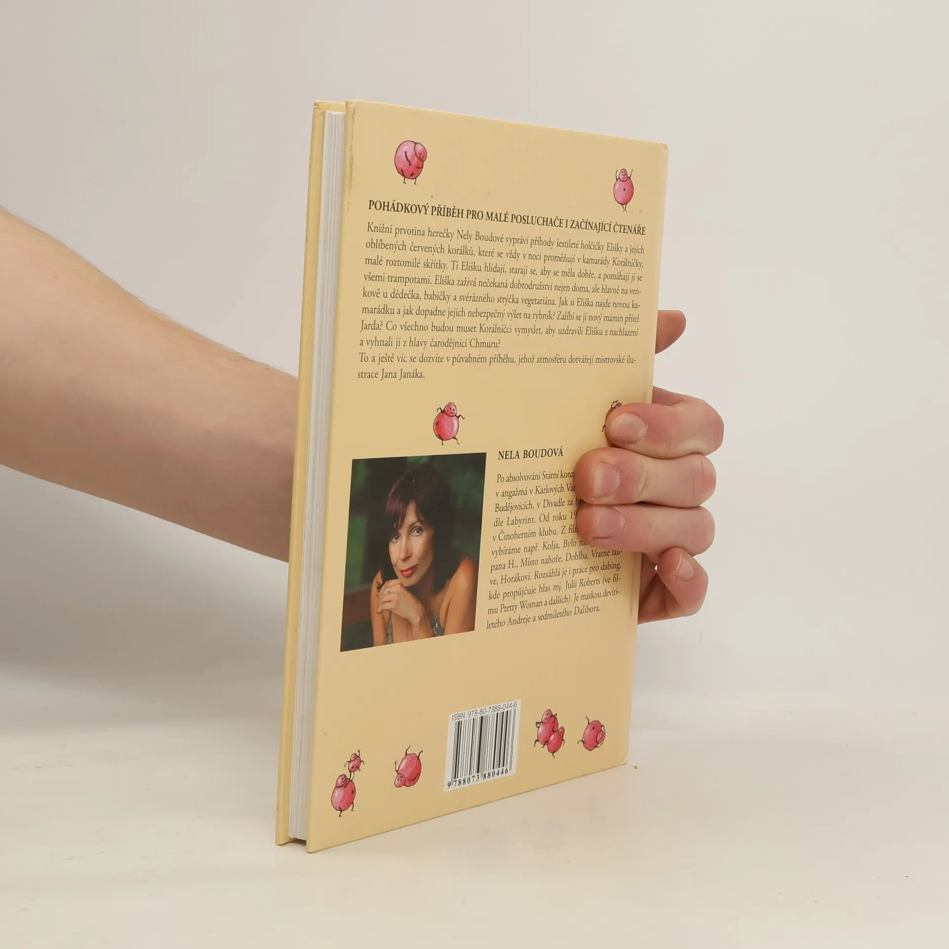 Pohádkový příběh pro začínající čtenáře. Knižní prvotina herečky Nely Boudové vypráví příhody šestileté holčičky Elišky a jejích oblíbených červených korálků, které se vždy v noci proměňují v kamarády Korálníčky, malé roztomilé skřítky. Ti Elišku hlídají, starají se, aby se měla dobře a pomáhají jí se všemi trampotami. Eliška zažívá nečekaná dobrodružství nejen doma, ale hlavně na venkově u dědečka, babičky a svérázného strýčka vegetariána. Jak si Eliška najde novou kamarádku a jak dopadne jejich nebezpečný výlet na rybník? Zalíbí se jí nový mámin přítel Jarda? Co všechno budou muset Korálníčci vymyslet, aby uzdravili Elišku z nachlazení a vyhnali jí z hlavy čarodějnici Chmuru? To všechno a ještě víc se dozvíte v půvabném příběhu, jehož atmosféru dotvářejí mistrovské ilustrace Jana Janáka.