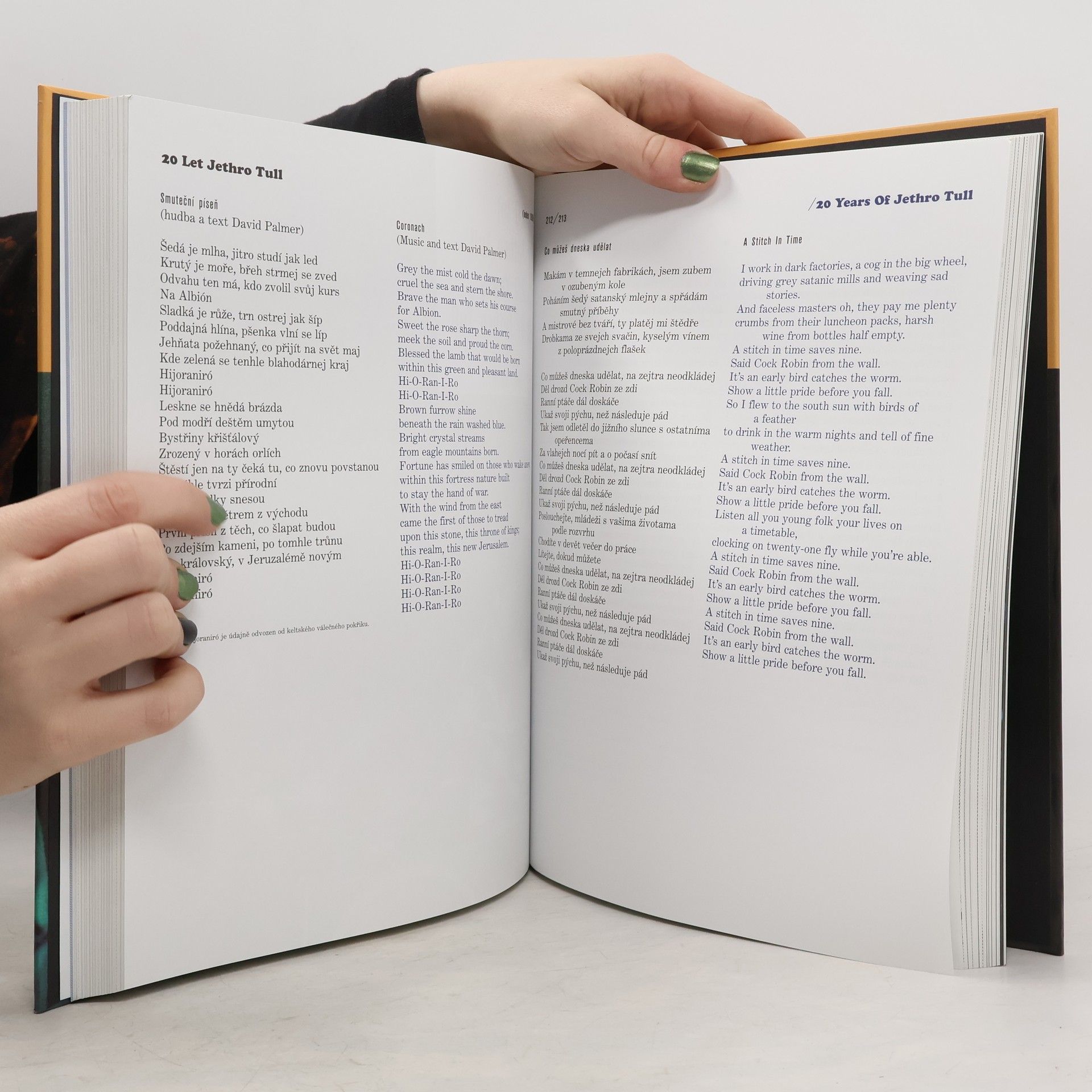 Publikace nabízí všechny doposud vydané texty hudební skupiny Jethro Tull; čtenář má tak jedinečnou možnost sledovat vývoj Andersonovy imaginace za celých čtyřicet let působení. Předkládané texty se většinou dotýkají témat společnosti, přírody a náboženství. Nejde však o žádná autorova kázání a Anderson často používá ironii, černý humor, dvojsmysl a sarkastický nadhled, a to včetně vlastní osoby. Dvojjazyčné texty (české a anglické) jsou doprovázeny fotografiemi z českých a moravských koncertů skupiny, jejichž autorem je Karel Brychta. Úvodní slovo Vladimír Mišík. 1. vydání