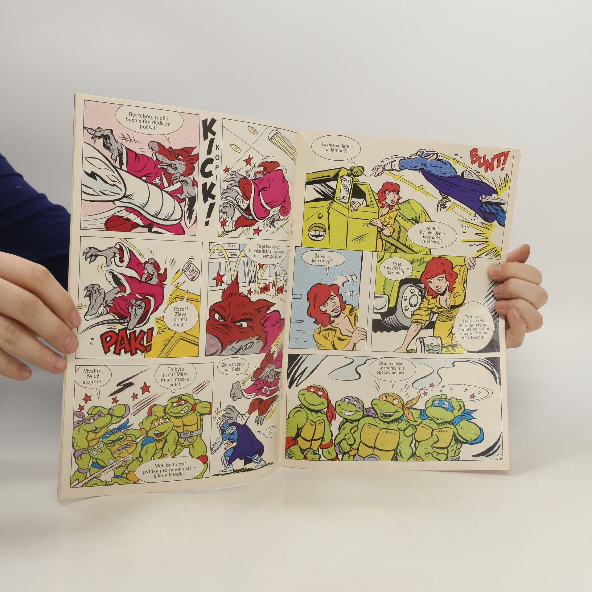 Příběh: Sarnatové oko II Sešit ze serie příběhu neunávných želvých bojovníků a milovníků pizzy - Donatellem, Michelangelem a Raffaelem. A nejen s nimi se setkáte, ale také s April O'Neilovou, atraktivní reportérkou, s Třískou, učitelem starého japonského bojového umění nindžutsu, a samozřejmě s Trhačem, jejich úhlavním nepřítelem, který chce ovládnout celý svět...
