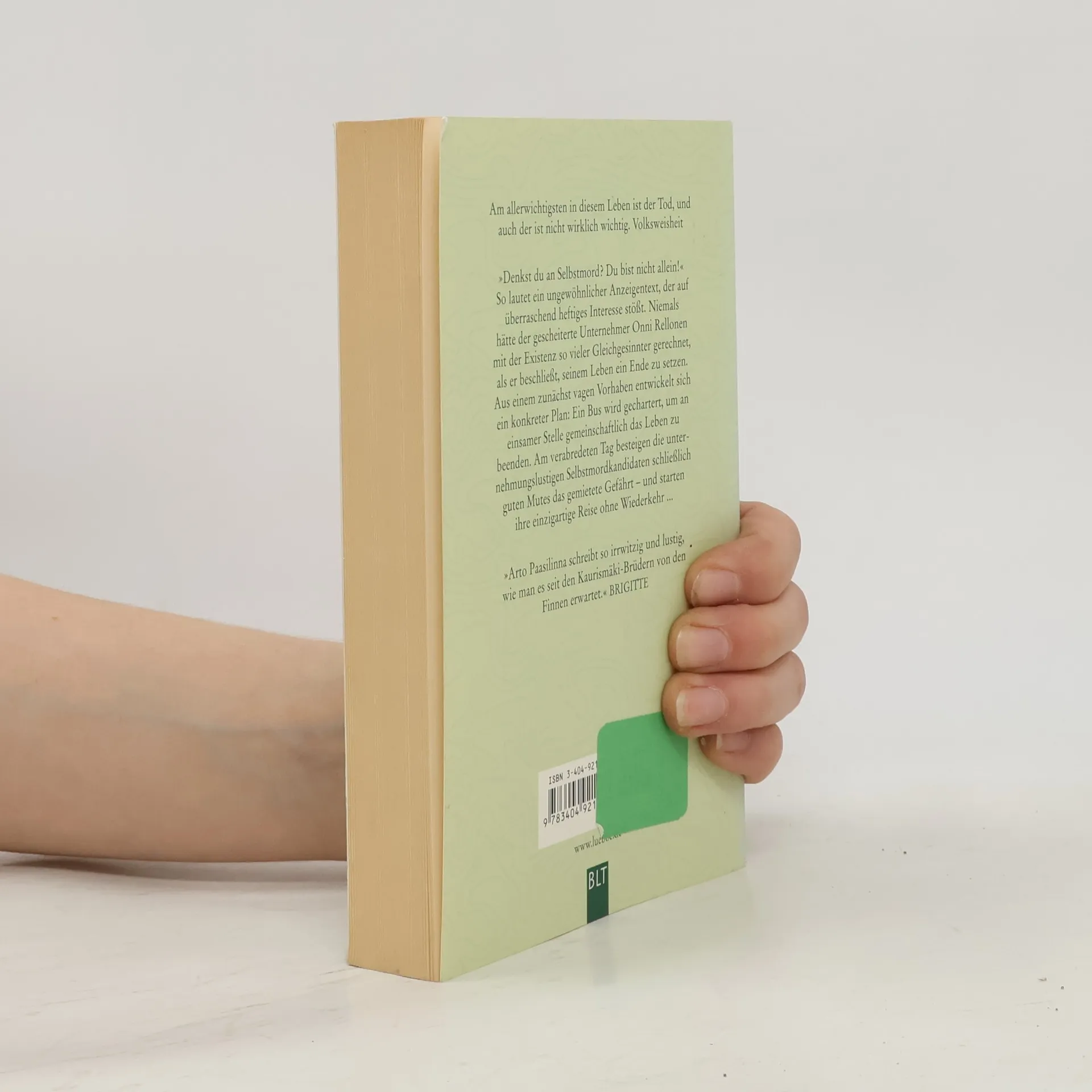 „Denkst du an Selbstmord? Du bist nicht allein!“ So lautet ein ungewöhnlicher Anzeigentext, der auf überraschend heftiges Interesse stößt. Niemals hätte der gescheiterte Unternehmer Onni Rellonen mit der Existenz so vieler Gleichgesinnter gerechnet, als er beschliest, seinem Leben ein Ende zu setzen. Aus einem zunächst vagen Vorhaben entwickelt sich ein konkreter Plan: Ein Bus wird gechartert, um an einsamer Stelle gemeinschaftlich das Leben zu beenden. Am verabredeten Tag besteigen die unternehmungslustigen Selbstmordkandidaten schließlich guten Mutes das gemietete Gefährt - und starten ihre einzigartige Reise ohne Wiederkehr ...