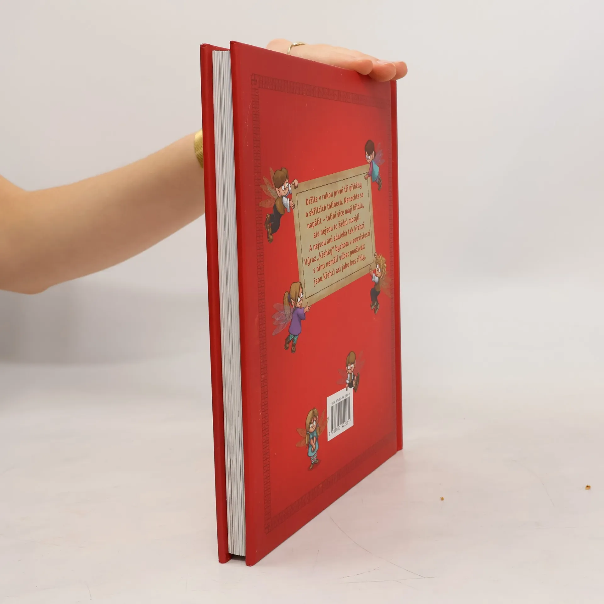 Kniha obsahuje první tři příběhy o skřítcích tolinech. Nenechte se napálit – tolini sice mají křídla, ale nejsou to žádní motýli. A nejsou ani zdaleka tak křehcí. Výraz „křehký“ bychom v souvislosti s nimi neměli vůbec používat: jsou křehcí asi jako kus cihly.