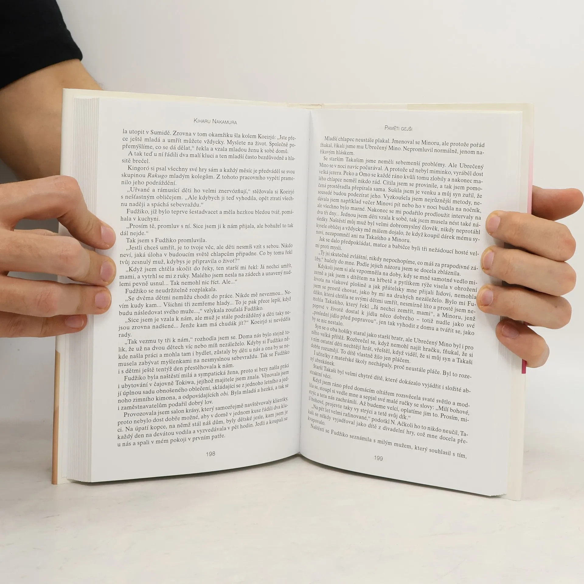 Bývalá gejša vysvětluje, oč se v povolání gejši, jako tradiční součásti japonské kultury, jedná, líčí předválečné Japonsko a svůj válkou poznamenaný život. Zcela mimořádné memoáry kromě líčení osobního údělu autorky přinášejí i velice zajímavé líčení tradičního života v Japonsku obecně a japonské kultury zejména. Nevšední je i autorčin pohled, srovnávající předválečné poměry se současnými, což pro evropského čtenáře je exotické v obou případech. Kiharu se věnovala náročné práci gejši už od svých šestnácti let, a setkala se s mnohými osobnostmi západního světa, které před válkou navštívily Japonsko. Válečná léta prožila velmi těžce a dobrodružně a po válce odešla do Ameriky, kde žije a kde se brzy prosadila jako propagátorka tradiční japonské kultury.