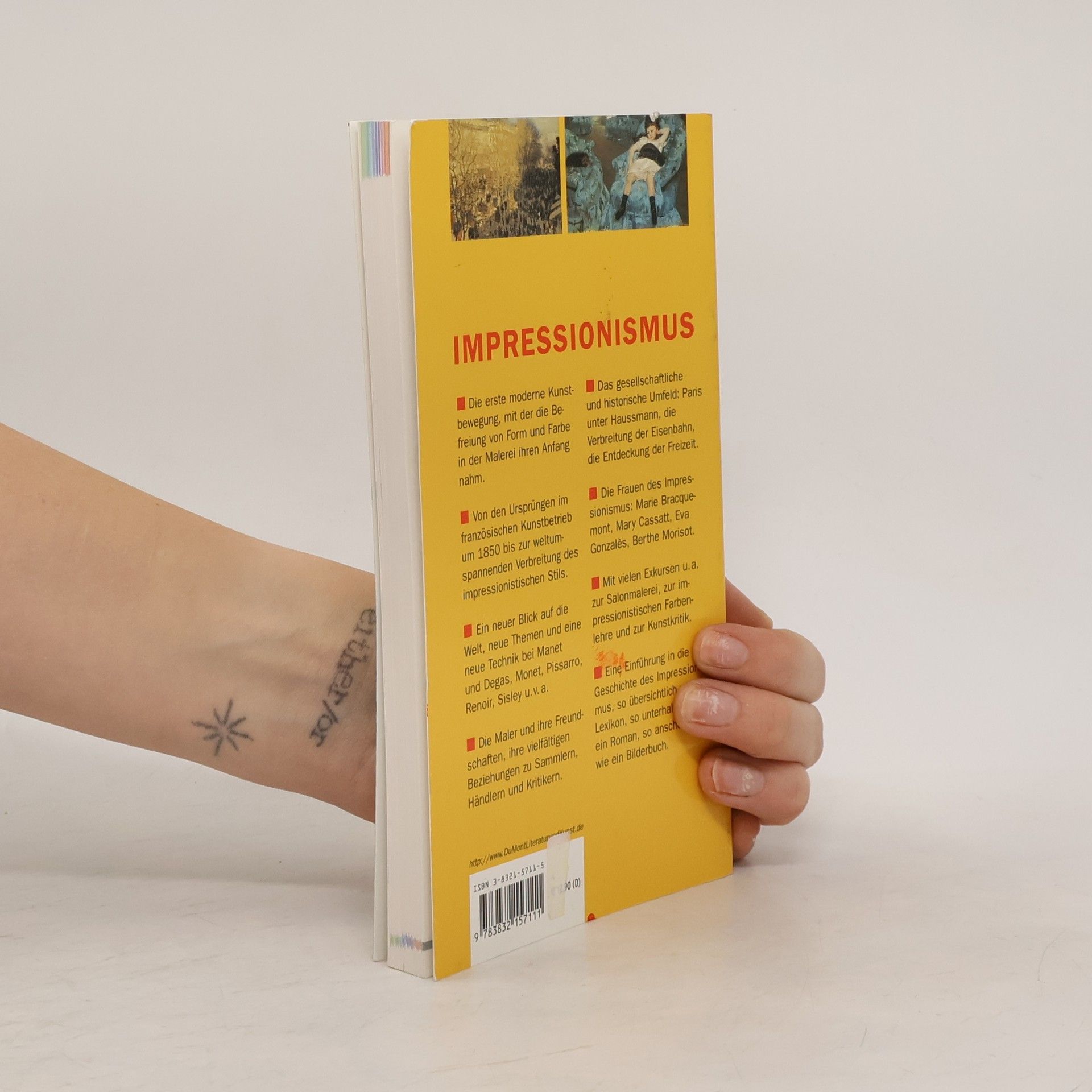 Als im April 1874 die erste Impressionisten-Ausstellung in Paris eröffnet wurde, ahnten weder das empörte Publikum noch die Kritiker, dass sich hier eine neue erfolgreiche Kunstrichtung zu etablieren begann. Heute ist der Kampf der Künstler um Anerkennung Legende. Internationale Ausstellungen und ihre Besucherrekorde, zahlreiche Bücher und Reproduktionen belegen, dass keine Kunstrichtung derzeit populärer ist als der französische Impressionismus. Schnellkurs Impressionismus bietet einen Überblick über die Entwicklung der Bewegung: die „Maler des modernen Lebens" und ihre revolutionären Neuerungen, ihre Freundschaften, ihre Arbeiten und die historischen und gesellschaftlichen Bedingungen, unter denen sie entstanden. Neben den großen Protagonisten wie Monet, Renoir, Degas oder Cézanne kommen auch Künstlerinnen wie Berthe Morisot und Mary Cassatt zu ihrem Recht, die lange im Schatten ihrer männlichen Kollegen standen. Ein Ausblick auf die impressionistischen Bewegungen in Deutschland, Italien, Skandinavien, England und Amerika rundet das Bild ab.