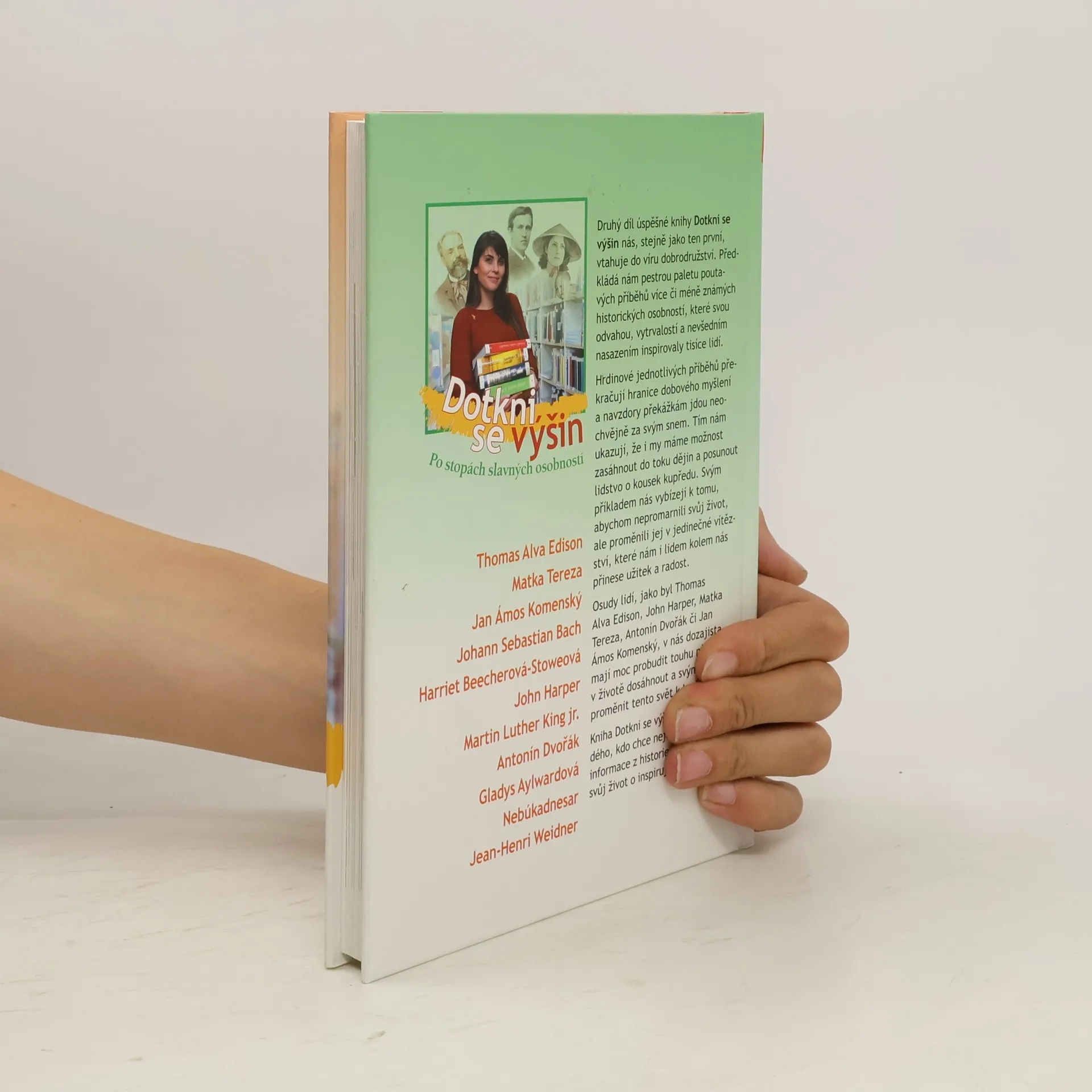 Druhý díl úspěšné knihy Dotkni se výšin nás, stejně jako ten první, vtahuje do víru dobrodružství. Předkládá nám pestrou paletu poutavých příběhů více či méně známých historických osobností, které svou odvahou, vytrvalostí a nevšedním nasazením inspirovaly tisíce lidí. Osudy lidí, jako byl Thomas Alva Edison, John Harper, Matka Tereza, Antonín Dvořák či Jan Ámos Komenský, v nás dozajista mají moc probudit touhu něčeho v životě dosáhnout a svým činem proměnit tento svět k lepšímu. Kniha Dotkni se výšin potěší každého, kdo chce nejen získat cenné informace z historie, ale i obohatit svůj život o inspirující myšlenky.