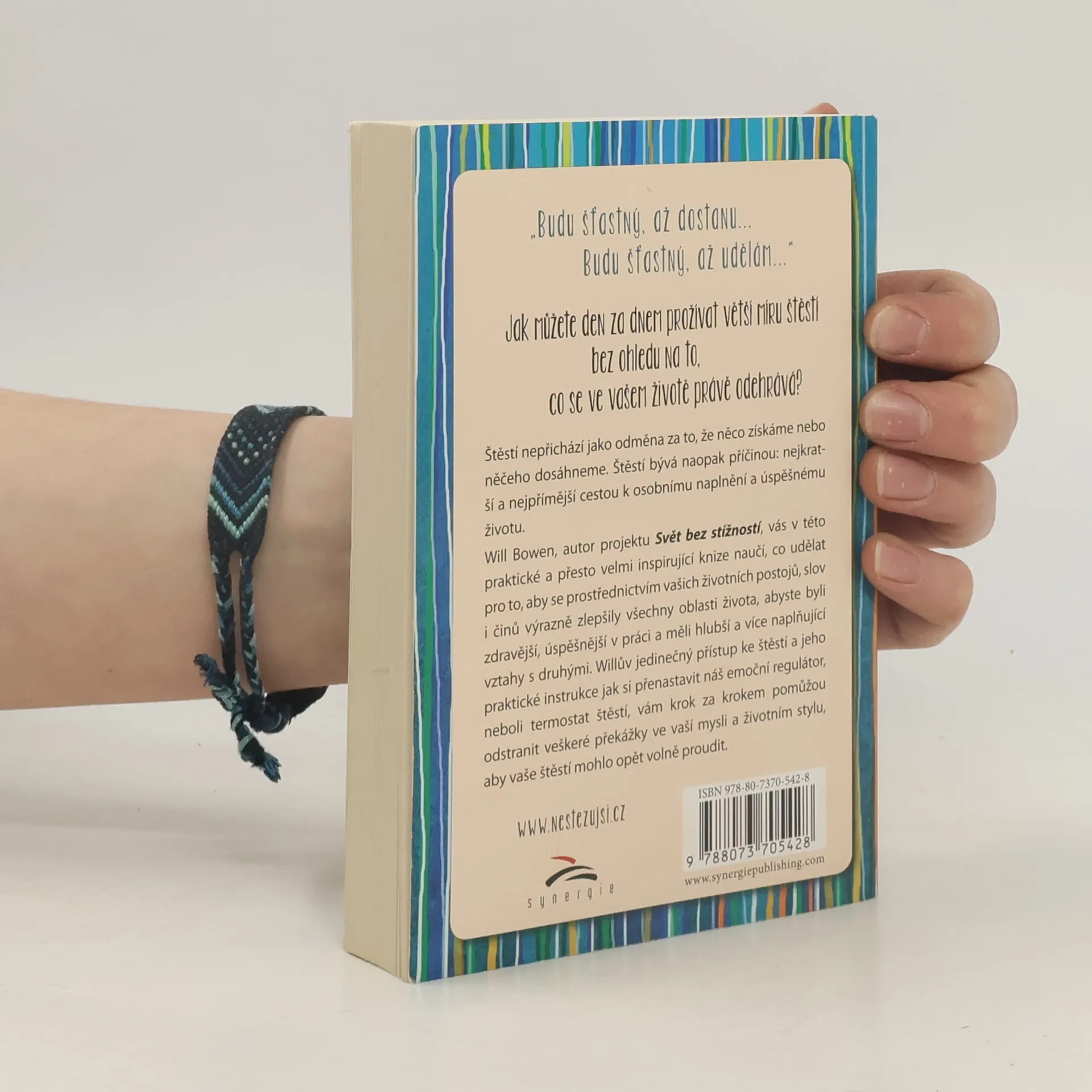 Jak můžete den za dnem prožívat větší míru štěstí bez ohledu na to, co se ve vašem životě právě odehrává? Štěstí nepřichází jako odměna za to, že něco získáme nebo něčeho dosáhneme. Štěstí bývá naopak příčinou: nejkratší a nejpřímější cestou k osobnímu naplnění a úspěšnému životu. Will Bowen, autor projektu Svět bez stížností, vás v této praktické a přesto velmi inspirující knize naučí, co udělat pro to, aby se prostřednictvím vašich životních postojů, slov i činů výrazně zlepšily všechny oblasti života, abyste byli zdravější, úspěšnější v práci a měli hlubší a více naplňující vztahy s druhými. Willův jedinečný přístup ke štěstí a jeho praktické instrukce jak si přenastavit náš emoční regulátor, neboli termostat štěstí, vám krok za krokem pomůžou odstranit veškeré překážky ve vaší mysli a životním stylu, aby vaše štěstí mohlo opět volně proudit.