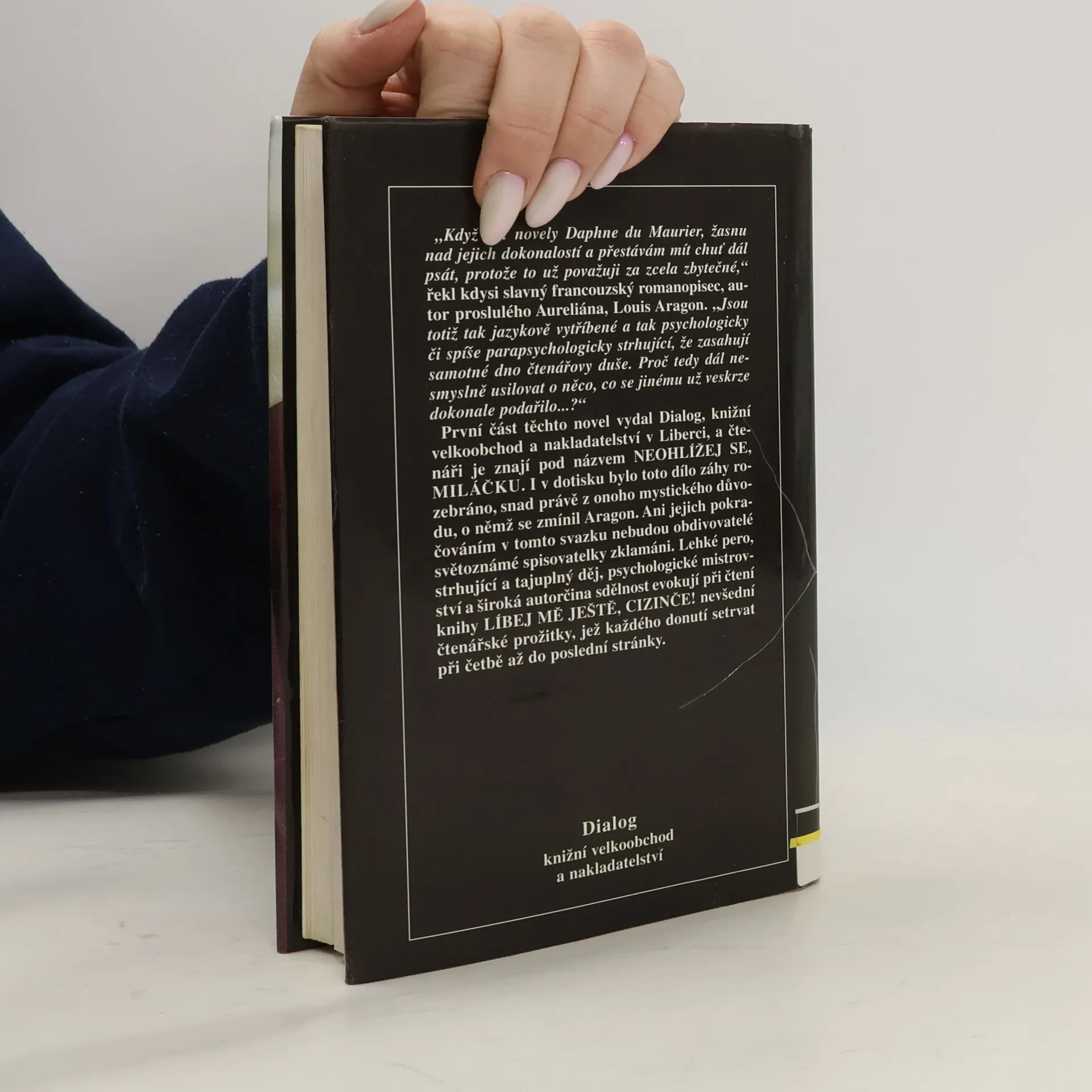 Místo anotace slova Louise Aragona : „Když čtu novely Daphne du Maurier, žasnu nad jejich dokonalostí a přestávám mít chuť dál psát, protože to už považuji za naprosto zbytečné. Jsou totiž tak jazykově vytříbené a tak psychologicky či spíše parapsychologicky strhující, že zasahují samotné dno čtenářovy duše. Proč tedy dál nesmyslně usilovat o něco, co se jinému už veskrze dokonale podařilo."