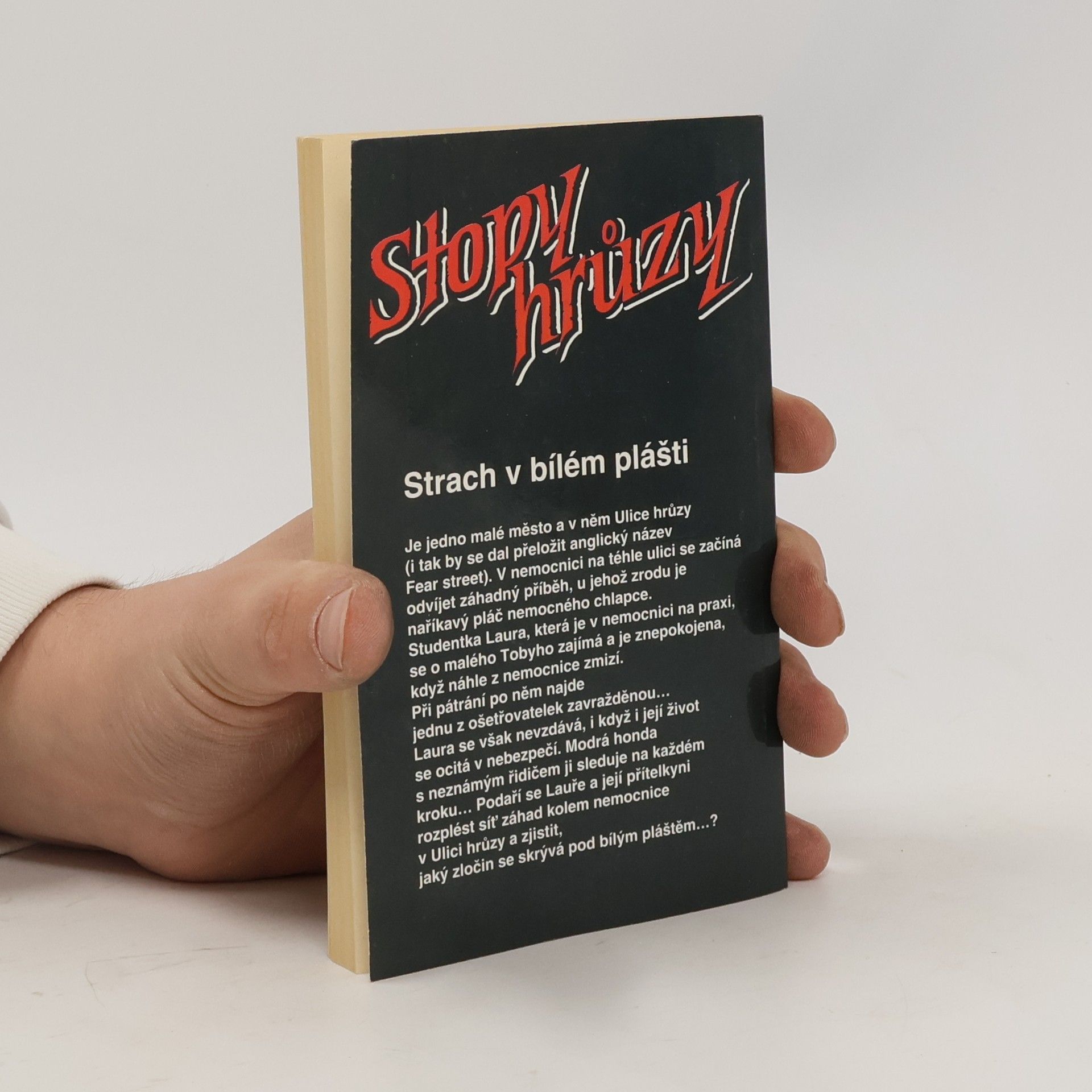 Je jedno malé město a v něm Ulice Hrůzy (i tak by se dal přeložit anglický název Fear Street). V nemocnici na téhle ulici se začíná odvíjet záhadný příběh, u jehož zrodu je naříkavý pláč nemocného chlapce. Studentka Laura, která je v nemocnici na praxi, se o malého Tobyho zajímá a je znepokojena, když náhle z nemocnice zmizí. Při pátrání po něm najde jednu z ošetřovatelek zavražděnou… Laura se však nevzdává, i když i její život se ocitá v nebezpečí. Modrá honda s neznámým řidičem ji sleduje na každém kroku… Podaří se Lauře a její přítelkyni rozplést síť záhad kolem nemocnice v Ulici Hrůzy a zjistit, jaký zločin se skrývá po bílým pláštěm…?... celý text