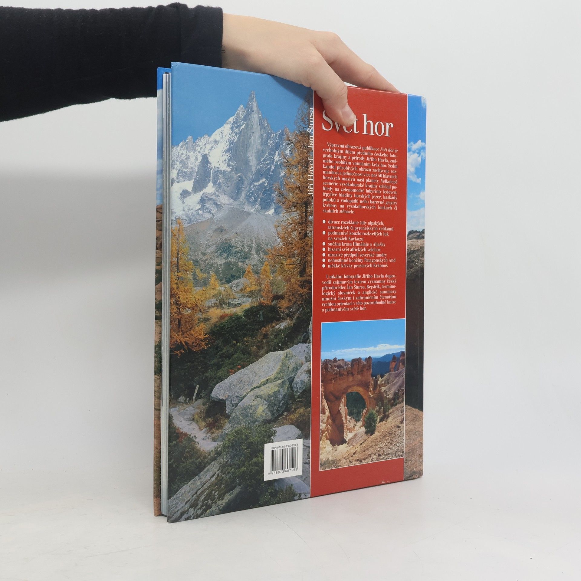 Výpravná obrazová publikace Svět hor je vrcholným dílem předního českého fotografa krajiny a přírody Jiřího Havla, známého osobitým vnímáním krás hor. Sedm kapitol působivých obrazů zachycuje rozmanitost a jedinečnost více než 50 hlavních horských masivů naší planety. Unikátní fotografie Jiřího Havla doprovodil zajímavým textem významný český přírodovědec Jan Štursa.