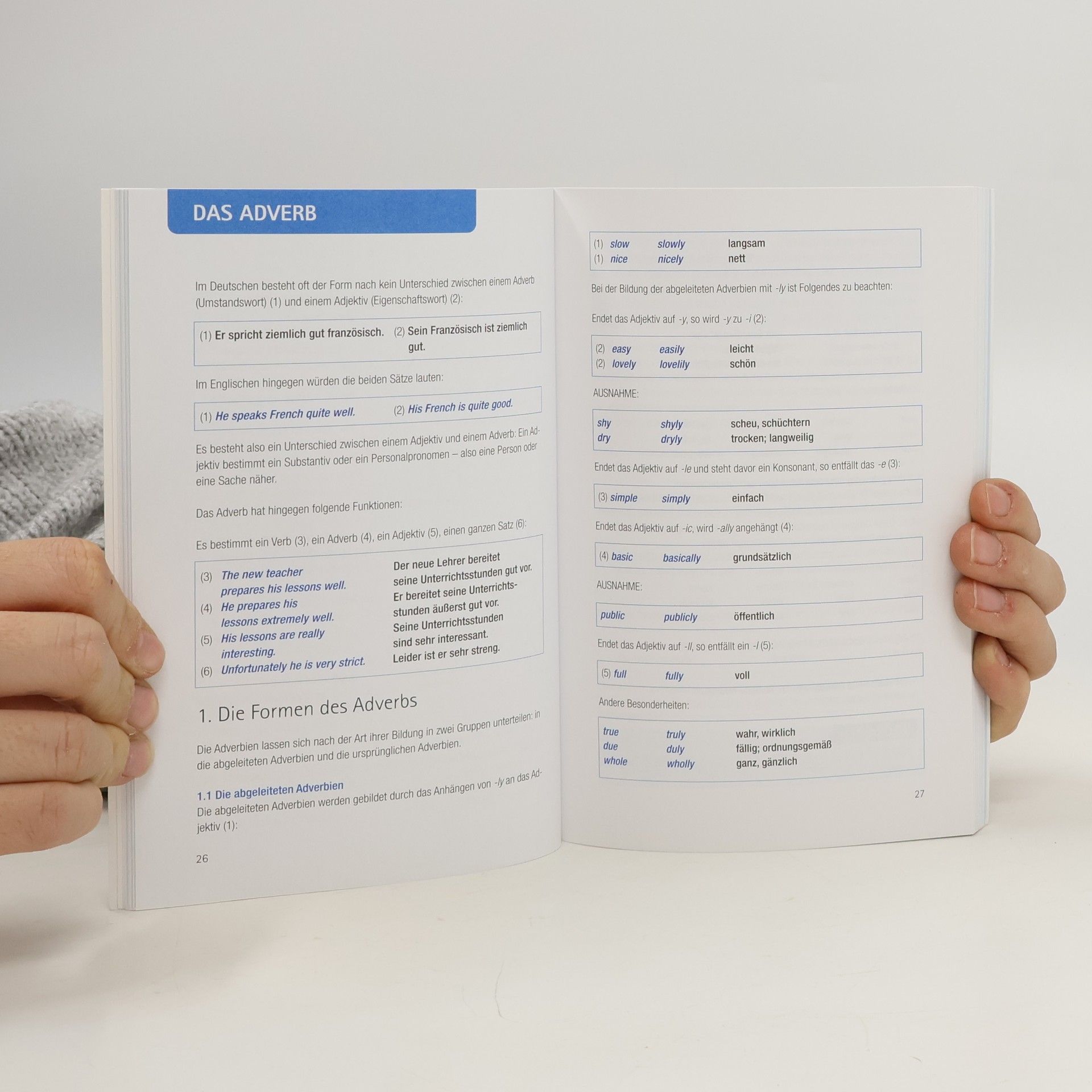 Die englische Grammatik aus der Reihe '…leicht gemacht' ist ein Nachschlagewerk, das die Grammatik des Englischen einfach und verständlich darstellt. Von den Grundlagen über Zeiten im Satzgefüge, Pronomen, Präpositionen, Zahlen und Uhrzeit bis hin zur Wortstellung im Satz. In zwölf Kapiteln werden alle wichtigen Regeln anhand zahlreicher Beispiele vermittelt. Am Ende jedes Kapitels befinden sich zahlreiche Übungen, um das erworbene Wissen sofort anzuwenden und testen zu können. - 2 in 1 - Nachschlagewerk und Übungsbuch - alle wichtigen Grammatikthemen - treffende Beispiele aus dem aktuellen Sprachgebrauch - Übungen mit Lösungen zur Überprüfung des Gelernten - ausführliches Register der grammatischen Begriffe - umfasst die Sprachniveaus A1 bis B1 - Zielgruppe: Schüler, Studierende und Selbst- und VHS-Lerner