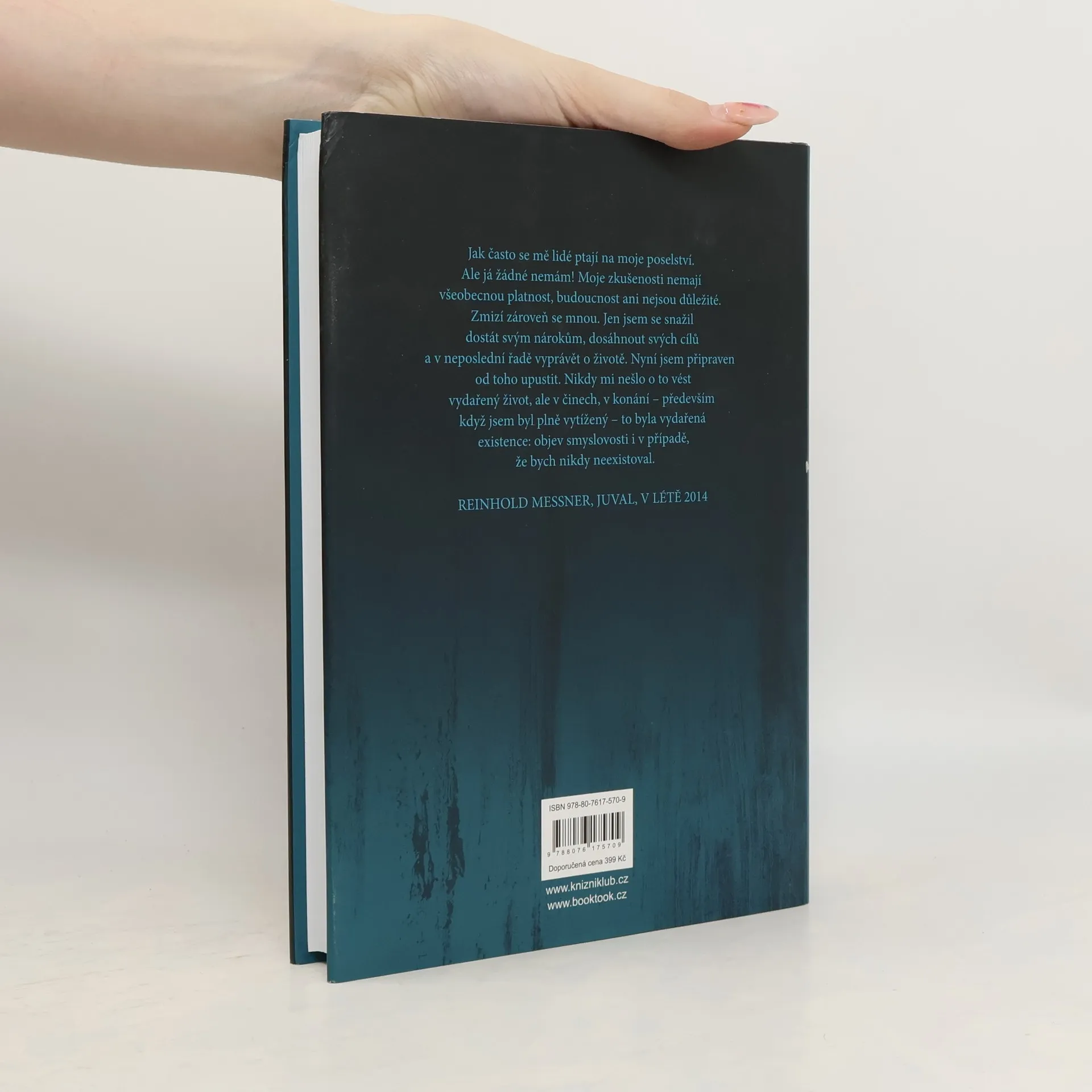 Vzpomínková kniha světoznámého horolezce, světoběžníka a pokořitele osmitisícovek a mnoha dalších horských vrcholů Reinholda Messnera podává propracovaný obraz bohatého, naplněného a současně spletitého života výjimečné osobnosti nejen horolezeckého sportu. Autor začíná líčením svého dětství v jihotyrolském Villnössu, jeho kniha však není jen prostým popisem jeho zážitků, životních peripetií a osudových zvratů, nýbrž se v ní vyznává ze svých mravních hodnot, politických názorů, a vše poutavým způsobem prokládá filozofickými úvahami o lidském životě jako takovém a umění člověka žít a prožít naplněný život.