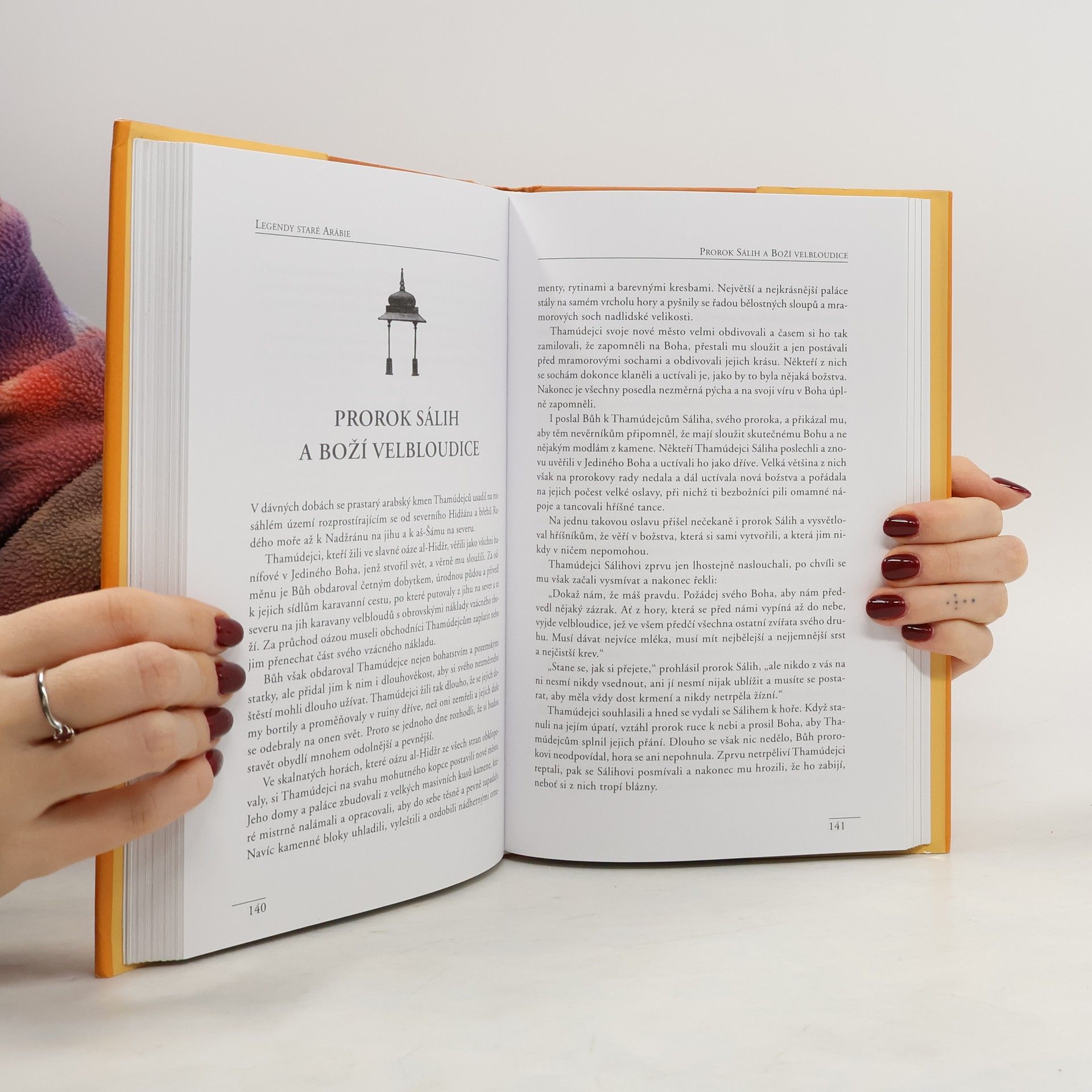Tato půvabná knížka vás zavede na výlet do starých časů... Ano, svět arabských pověstí a legend, tak obrazivý a snivý, v němž vystupují neohrožení princové, pohádkově krásné princezny, démoni, dobří džinové, nejrůznější postavičky z pozemské i nadpřirozené a kde lidé cestují na létajících kobercích a chrabří mládenci bojují s draky... Citlivě a hlubokou znalostí věci, vypráví zkušený autor příběhy, jež čtenáři otevírají bránu do pro nás exotické říše, příběhy, které jsou odrazem arabské kultury a doby, v níž byly napsány.