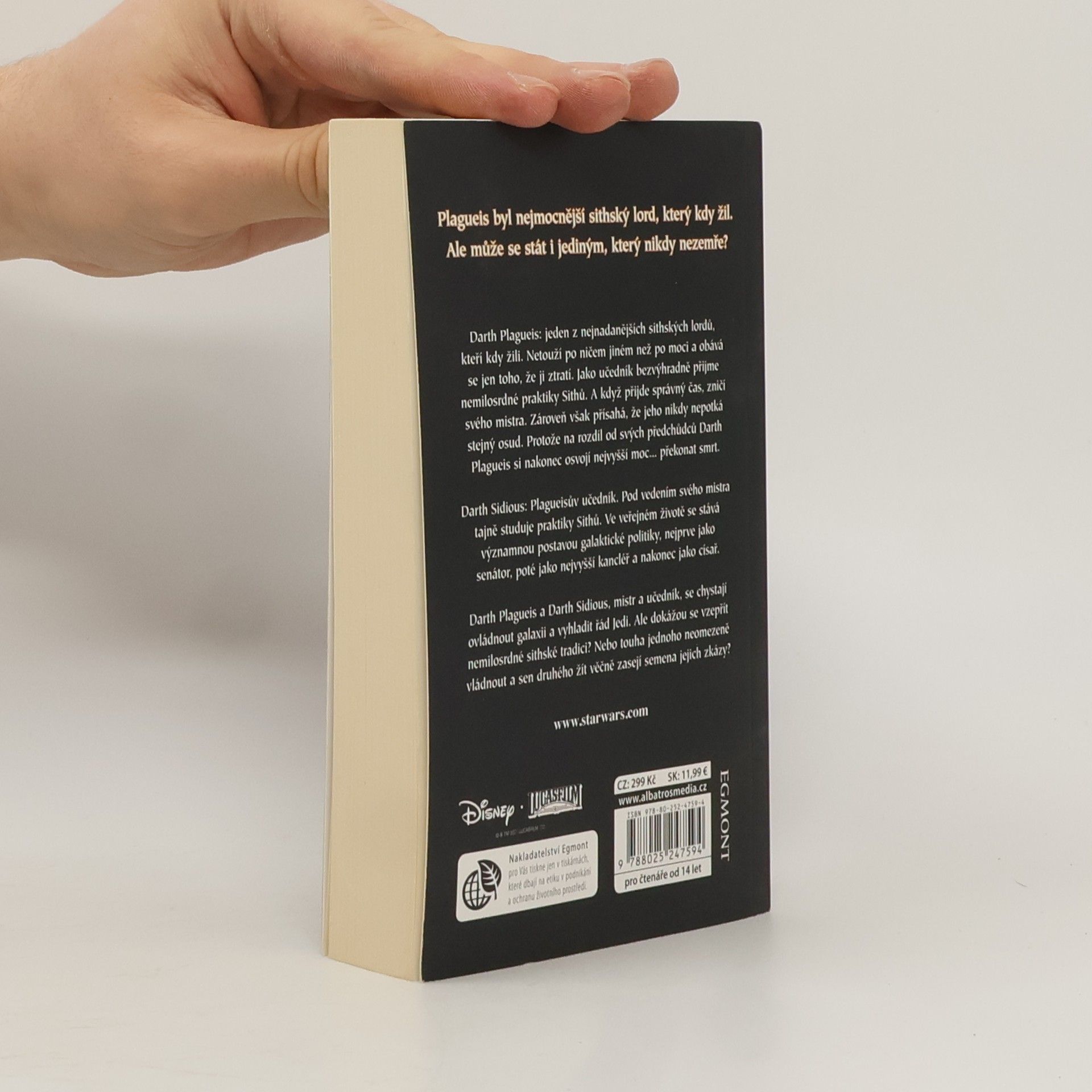 Darth Plagueis: jeden z nejnadanějších sithských lordů, kteří kdy žili. Netouží po ničem jiném než po moci a obává se jen toho, že ji ztratí. Jako učedník bezvýhradně přijme nemilosrdné praktiky Sithů. A když přijde správný čas, zničí svého mistra, Dartha Tenebrouse. Zároveň však přísahá, že jeho nikdy nepotká stejný osud. Na rozdíl od svých předchůdců si totiž Darth Plagueis nakonec osvojí nejvyšší moc... překonat smrt. Darth Sidious: Plagueisův učedník. Pod vedením svého mistra tajně studuje praktiky Sithů. Ve veřejném životě se stává významnou postavou galaktické politiky, nejprve jako senátor, poté jako nejvyšší kancléř a nakonec jako císař. Darth Plagueis a Darth Sidious, mistr a učedník, se chystají ovládnout galaxii a vyhladit řád Jedi. Ale dokážou se vzepřít nemilosrdné sithské tradici? Nebo touha jednoho neomezeně vládnout a sen druhého žít věčně zasejí semena jejich zkázy?