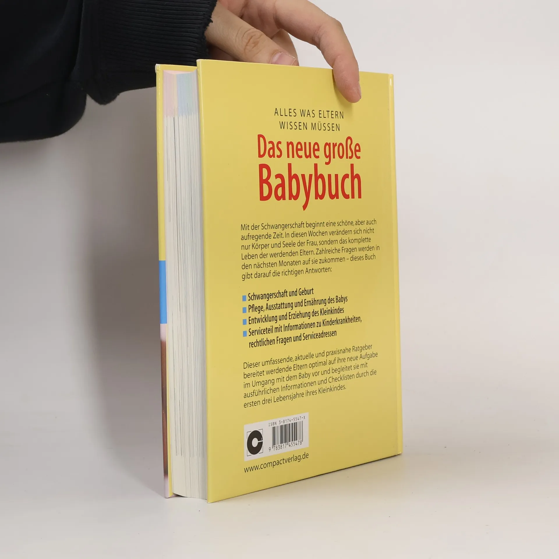 Das Buch bietet einen umfassenden Überblick über alles Wissenswerte von der Schwangerschaft bis hin zum vollendeten 3. Lebenjahr des Kindes. Zur Veranschaulichung der Texte tragen ca. 300 Abbildungen und Zeichnungen bei. Der Band erläutert das Wichtigste zu den Themen Schwangerschaft, Geburt, Säuglingspflege und -ernährung, Gesundheitsvorsorge und Kinderkrankheiten, Tipps zur Erziehung sowie Hilfe und Rat für die Familie. Checklisten zu u. a. Babys Erstaustattung oder Sicherheit in Haus und Garten etc. zeigen den Praxisbezug. Ein ausführliches Register erleichtert die gezielte Suche.
