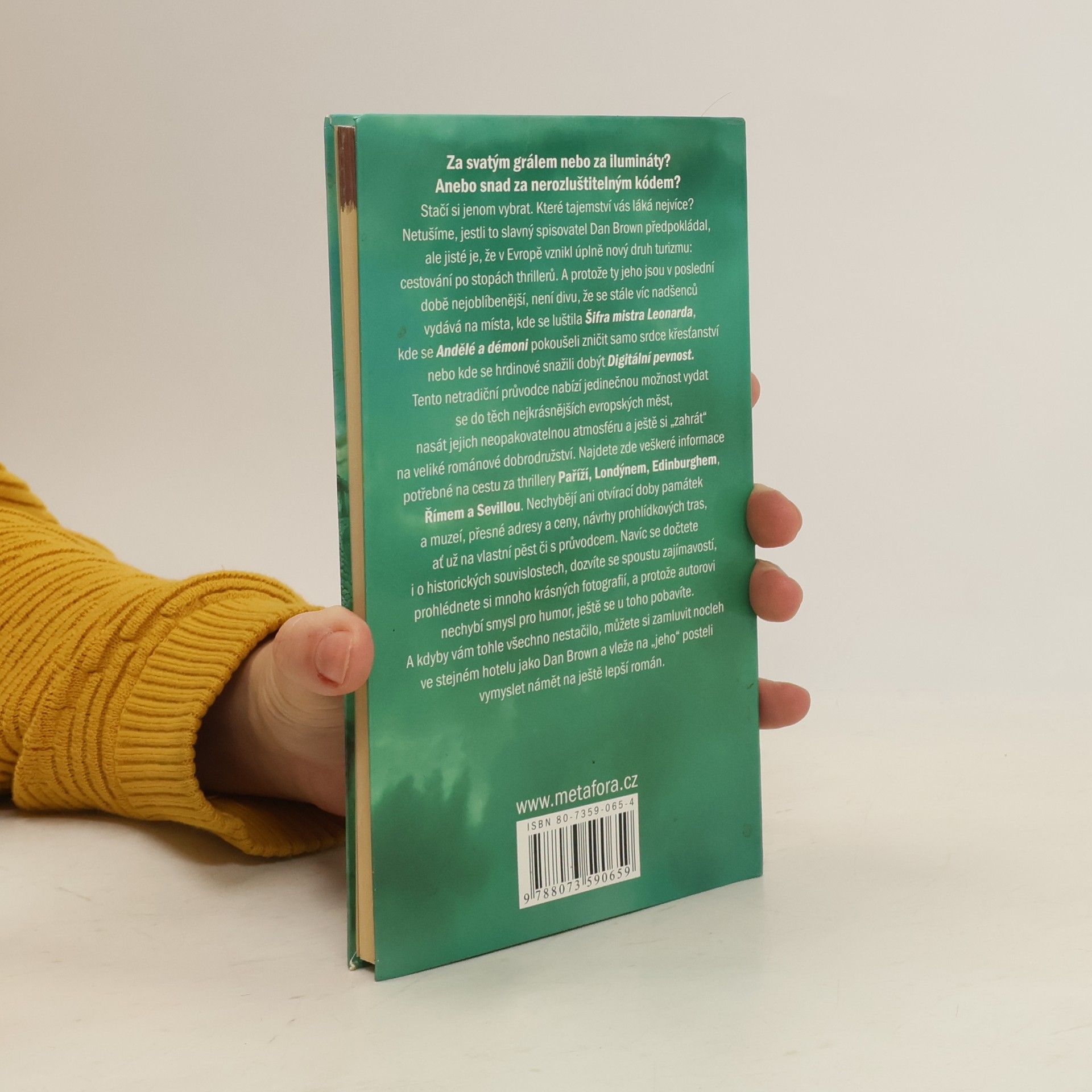 Kniha je určena čtenářům detektivních románů Dana Browna "Šifra mistra Leonarda", "Andělé a démoni" a "Digitální pevnost" jako průvodce po evropských městech, v nichž se romány odehrávají. Průvodce je provázen barevnými fotografiemi popisovaných památek a barevnými snímky z filmu Šifra mistra Leonarda. Literární průvodce po památkách Paříže, Říma, Vatikánu, Londýna, Edinburghu a Sevilly, které se váží k románům Dana Browna, zvláště k Šifře mistra Leonarda.