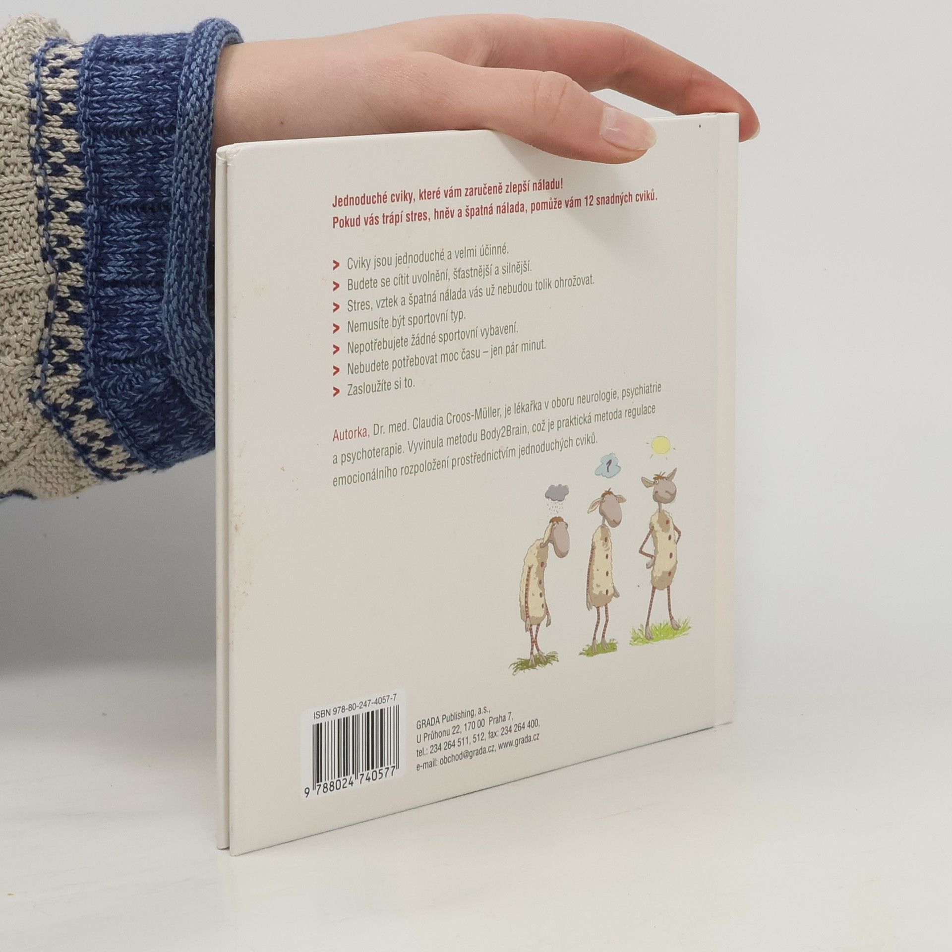 Tato kniha je určena všem, kdo bojují se špatnou náladou a stresem. Autorka vám ukáže, jak lze tyto nepříjemné pocity překonat velmi jednoduchými cviky - tak jednoduchými, že vůbec nemusíte být sportovní typ, abyste je zvládli. Nepotřebujete speciální oblečení, nepotřebujete permanentku do fitness centra, nepotřebujete si k tomu vyhradit čas - cvičíte jen tak mimochodem. Stačí vám ale jen malá chvilka a budete se cítit lépe. Na obrázcích vám Oscar - dobře naladěná ovečka - předvede 12 jednoduchých a účinných cviků které čtenářům jakéhokoliv věku pomohou překonat špatnou náladu a zároveň se i pobavit. Ovlivněte svůj nervový systém, provádějte stabilizační cvičení - budete mentálně i emocionálně zklinění, uvolnění a silní. Posilujte svou odolnost a svou dobrou náladu.