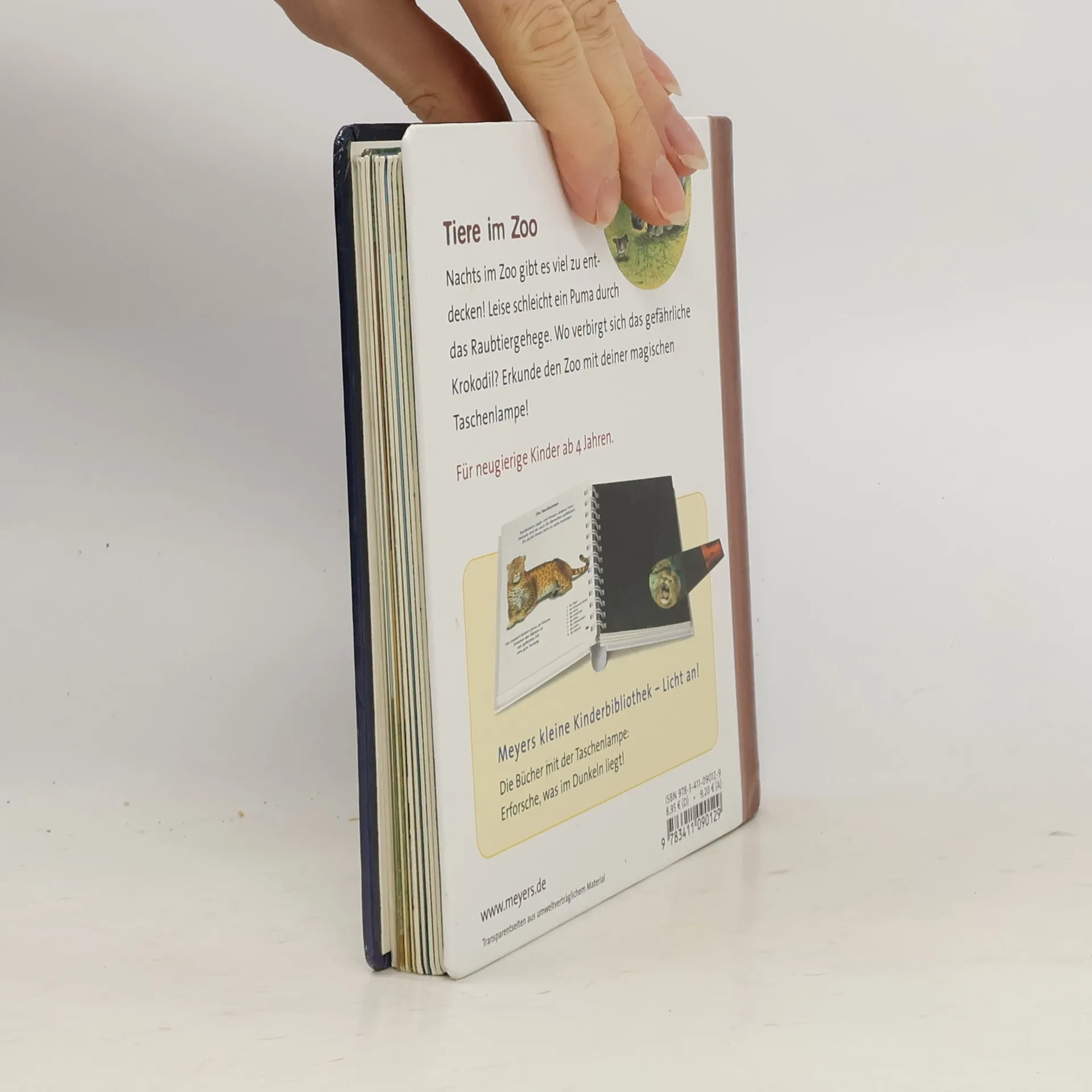 In der spannenden Sachbilderbuchreihe „Meyers kleine Kinderbibliothek - Licht an!“ entdecken kleine Forscher, was normalerweise im Dunkeln liegt. Mit der beiliegenden „Taschenlampe“ aus Papier können Kinder ab 4 Jahren unter den Entdeckerfolien gezielt bunte Szenen „beleuchten“ und in verborgene Welten eintauchen. In diesem Band lernen Kinder spielerisch, welche Tiere man im Zoo bewundern kann, welche Raubkatzen, Steppentiere, Vögel, Affen und Wassertiere es gibt, was ihre besonderen Merkmale sind, was ein Terrarium ist und welche Tiere dort gehalten werden.