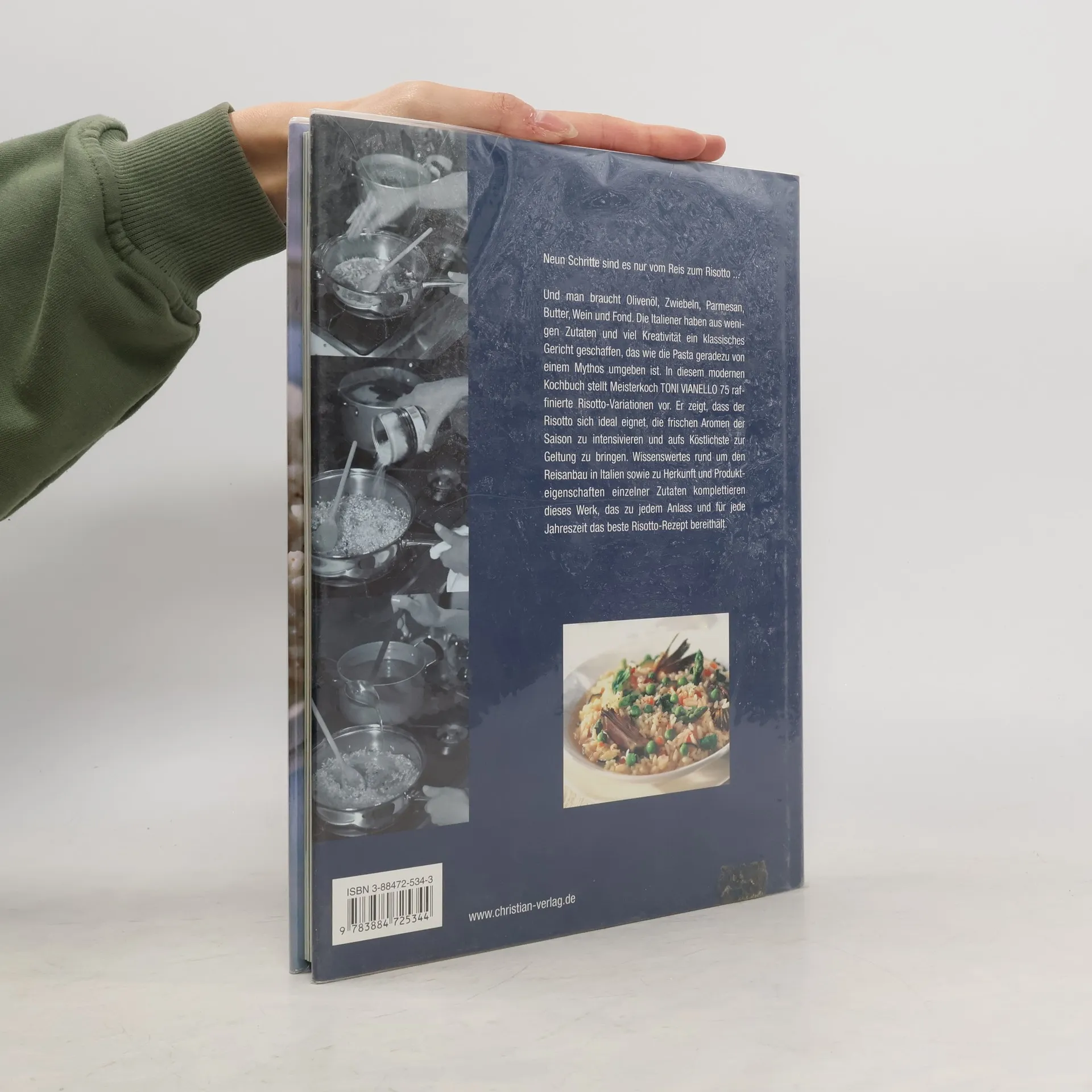 Neun Schritte sind es nur vom Reiskorn zum Risotto … … und man braucht Olivenöl, Zwiebeln, Wein und Brühe, Parmesan und Butter. Die Italiener haben aus wenigen Zutaten und viel Kreativität ein klassisches Gericht geschaffen, das wie die Pasta geradezu von einem Mythos umgeben ist. Lassen Sie sich von den 75 Variationen, die Meisterkoch Toni Vianello mit den frischen Zutaten der Saison zubereitet, verführen!