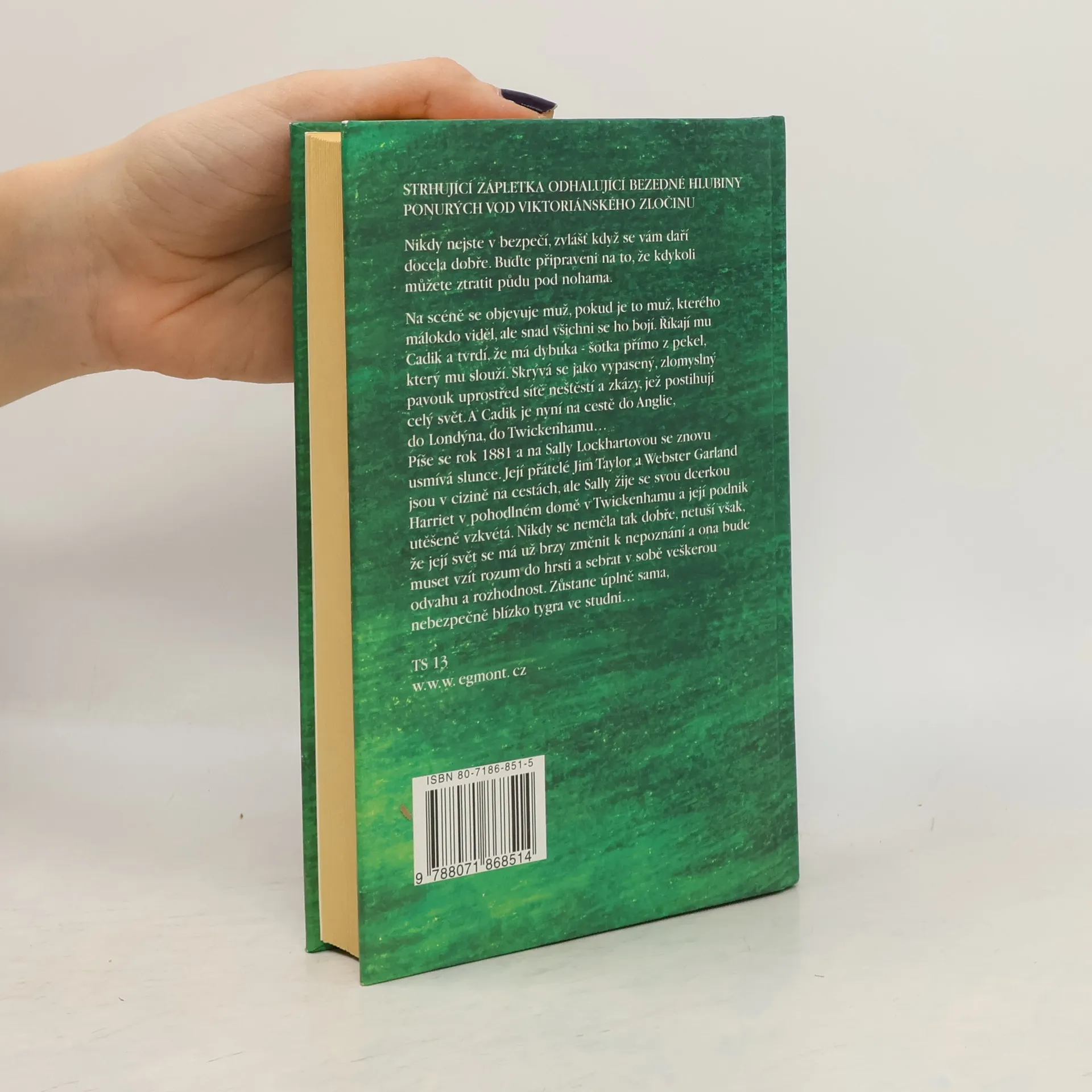 Strhující zápletka odhalující bezedné hlubiny ponurých vod Viktoriánského zločinu… Nikdy nejste v bezpečí, zvlášť když se vám daří docela dobře. Buďte připraveni na to, že kdykoli můžete ztratit půdu pod nohama. Na scéně se objevuje muž, pokud je to muž, kterého málokdo viděl, ale snad všichni se ho bojí. Říkají mu Cadik a tvrdí, že má dybuka – šotka přímo z pekel, který mu slouží. Skrývá se jako vypasený, zlomyslný pavouk uprostřed sítě neštěstí a zkázy, jež postihují celý svět. A Cadik je nyní na cestě do Anglie do Londýna, do Twickenhamu… Píše se rok 1881a na Sally Lockhartovou se znova usmívá slunce. Její přátelé Jim Taylor a Webster Garland jsou v cizině na cestách, ale Sally žije se svou dcerkou Harriet v pohodlném domě v Twickenhamu a její podnik úspěšně vzkvétá. Nikdy se neměla tak dobře, netuší však, že její svět se má už brzy změnit k nepoznání a ona bude muset vzít rozum do hrsti a sebrat v sobě veškerou odvahu a rozhodnost. Zůstane úplně sama, nebezpečně blízko tygra ve studni…