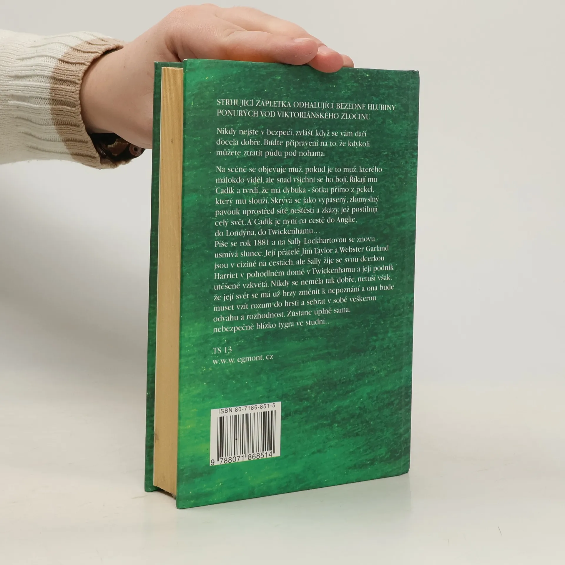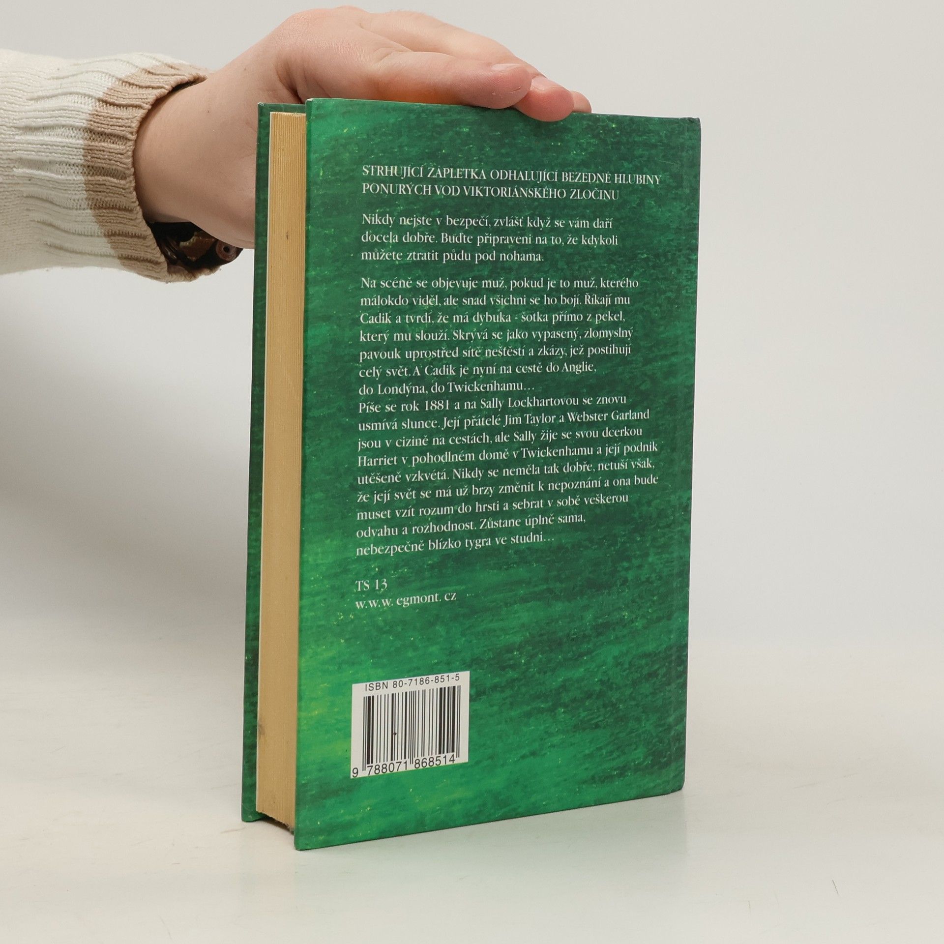 Strhující zápletka odhalující bezedné hlubiny ponurých vod Viktoriánského zločinu… Nikdy nejste v bezpečí, zvlášť když se vám daří docela dobře. Buďte připraveni na to, že kdykoli můžete ztratit půdu pod nohama. Na scéně se objevuje muž, pokud je to muž, kterého málokdo viděl, ale snad všichni se ho bojí. Říkají mu Cadik a tvrdí, že má dybuka – šotka přímo z pekel, který mu slouží. Skrývá se jako vypasený, zlomyslný pavouk uprostřed sítě neštěstí a zkázy, jež postihují celý svět. A Cadik je nyní na cestě do Anglie do Londýna, do Twickenhamu… Píše se rok 1881a na Sally Lockhartovou se znova usmívá slunce. Její přátelé Jim Taylor a Webster Garland jsou v cizině na cestách, ale Sally žije se svou dcerkou Harriet v pohodlném domě v Twickenhamu a její podnik úspěšně vzkvétá. Nikdy se neměla tak dobře, netuší však, že její svět se má už brzy změnit k nepoznání a ona bude muset vzít rozum do hrsti a sebrat v sobě veškerou odvahu a rozhodnost. Zůstane úplně sama, nebezpečně blízko tygra ve studni…