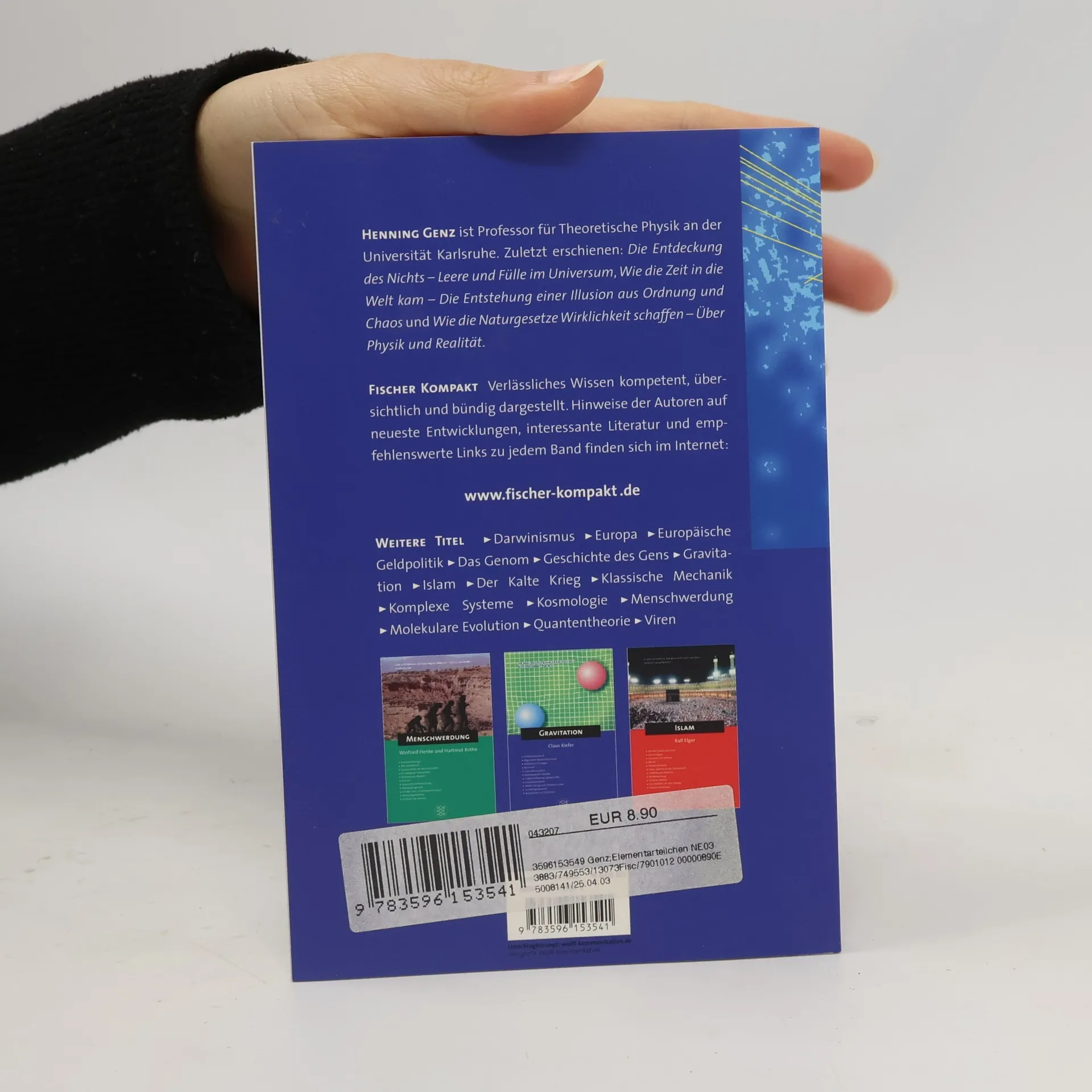 Während früher als Elementarteilchen Proton, Neutron und Elektron bekannt waren, haben neue Erkenntnisse der Physik ergeben, dass auch die früheren "Elementarteilchen" zusammengesetzt sind. Heute gibt es das Standardmodell der Elementarteilchen mit je 6 Quarks und Leptonen, wozu noch das Higgs-Boson kommt, mit denen "alle Reaktionen irdischer Elementarteilchen zumindest im Prinzip zu verstehen" sind. Die einzelnenn Leptonen und Quarks werden mit ihren Eigenschaften auf dem neuesten Stand der Wissenschaft vorgestellt. Dazu gehören auch 4 Grundkräfte - die starke Kraft, die elektromagnetische Kraft, die schwache Kraft und die Gravitationskraft-, die in einer "hypothetischen Theorie namens GUT für "Grand Unified Theories" vereinigt werden sollen. Im Anhang finden sich "Vertiefungen" zu einzelnen Themen des Hauptteils, ein Glossar sowie Literaturhinweise. Auch dieses Werk aus der Reihe "Fischer kompakt" ist betont knapp geschrieben, wobei Grundkenntnisse in Atomphysik vorausgesetzt werden. Empfehlenswert in Ergänzung zu thematisch breiteren, einführenden Darstellungen. (2)