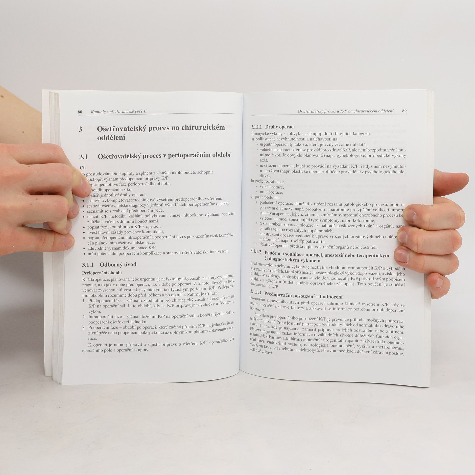Učebnice popisuje ošetřovatelský proces při odběru biologického materiálu a endoskopickém vyšetření, ošetřování na chirurgii, péči o pacienty při punkcích.
