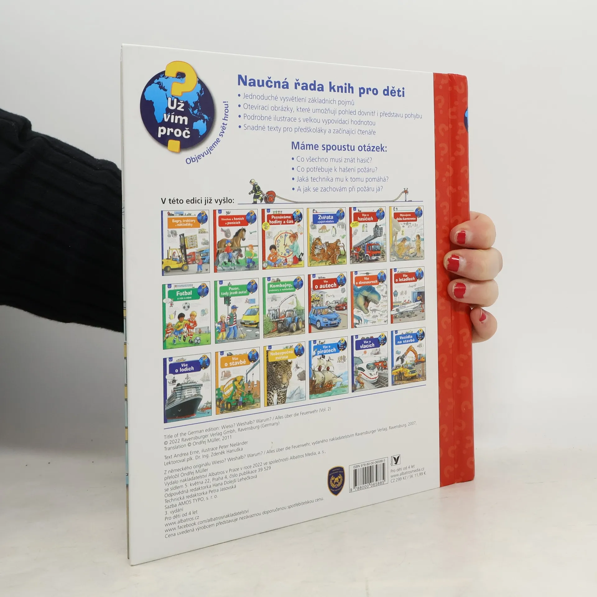 Co všechno musí znát hasič? Co potřebuje k hašení požáru? Co se děje na požární stanici a kde všude ještě hasiči pomáhají? A jak se zachovám při požáru já? Chytrá knížka pro malé děti. Dítě se nejen dozví odpovědi na řadu otázek, ale také získá návod, jak se chovat v nebezpečné situaci. Knížka vychází s velkým plakátem s nejdůležitějšími požárními vozidly. Je to čtení nejen pro kluky!