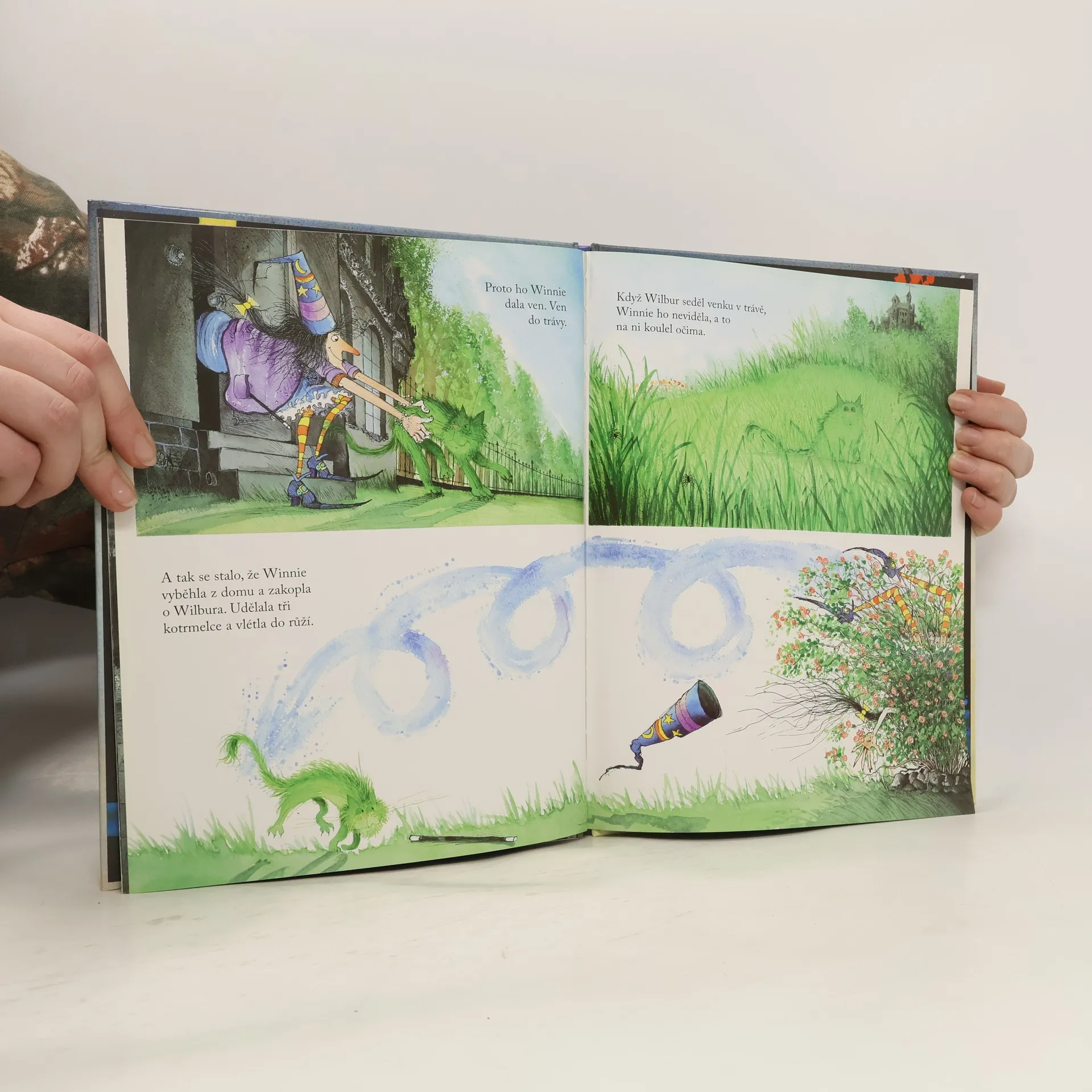 Čarodějka Winnie žije v černém domě. Má černá křesla a černé schody, černé podlahy a černé dveře. Potíž je v tom, že její kocour Wilbur je taky černý. Winnie bude potřebovat nějaká ta kouzla, aby se už nestalo, že se Wilbur v té černotě ztratí...
