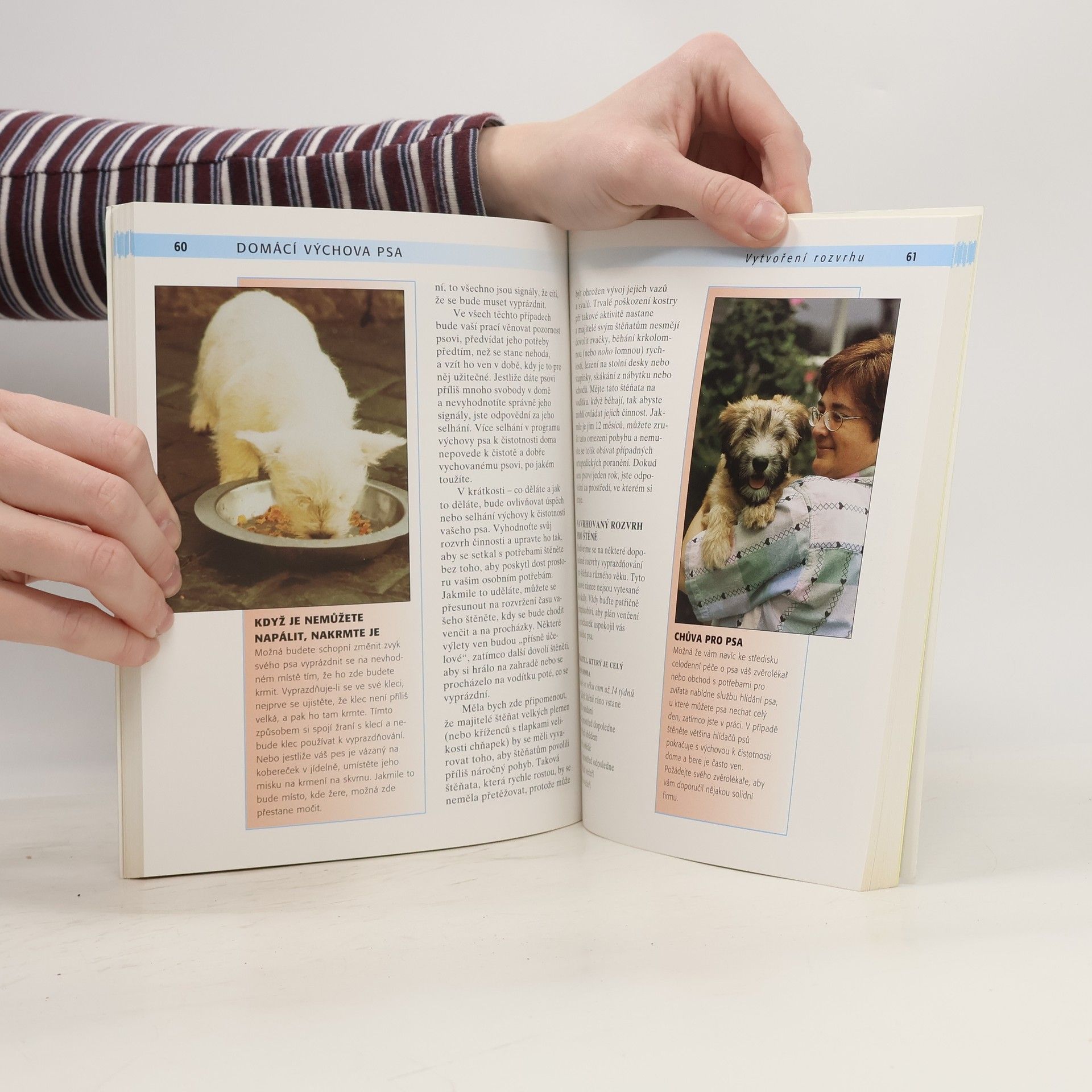 Příručka vám pomůže pochopit, jak pes myslí, naučit se s ním komunikovat a používat jeho instinkty ke svému užitku. Seznámíte se s ověřenými metodami jak naučit psa čistotnosti, jak ho přivyknout k pobytu v kleci, jak rozvrhnout venčení psa, aby vyhovovalo nejen vašemu pracovnímu rozvrhu, ale také potřebám psa a prostředí, ve kterém žijete. Zjistíte, jak se liší správné výchovné postupy v různých stádiích života psa (včetně doporučení týkajících se přístupu k psímu seniorovi) nebo s ohledem na život ve městě či na venkově. Zvláštní oddíl se zaměřuje na řešení problémů, napravování různých vad v chování psa, zjišťování příčin nehod a odstranění běžných překážek, které musí zdolávat jak majitelé, tak jejich psí kamarádi.