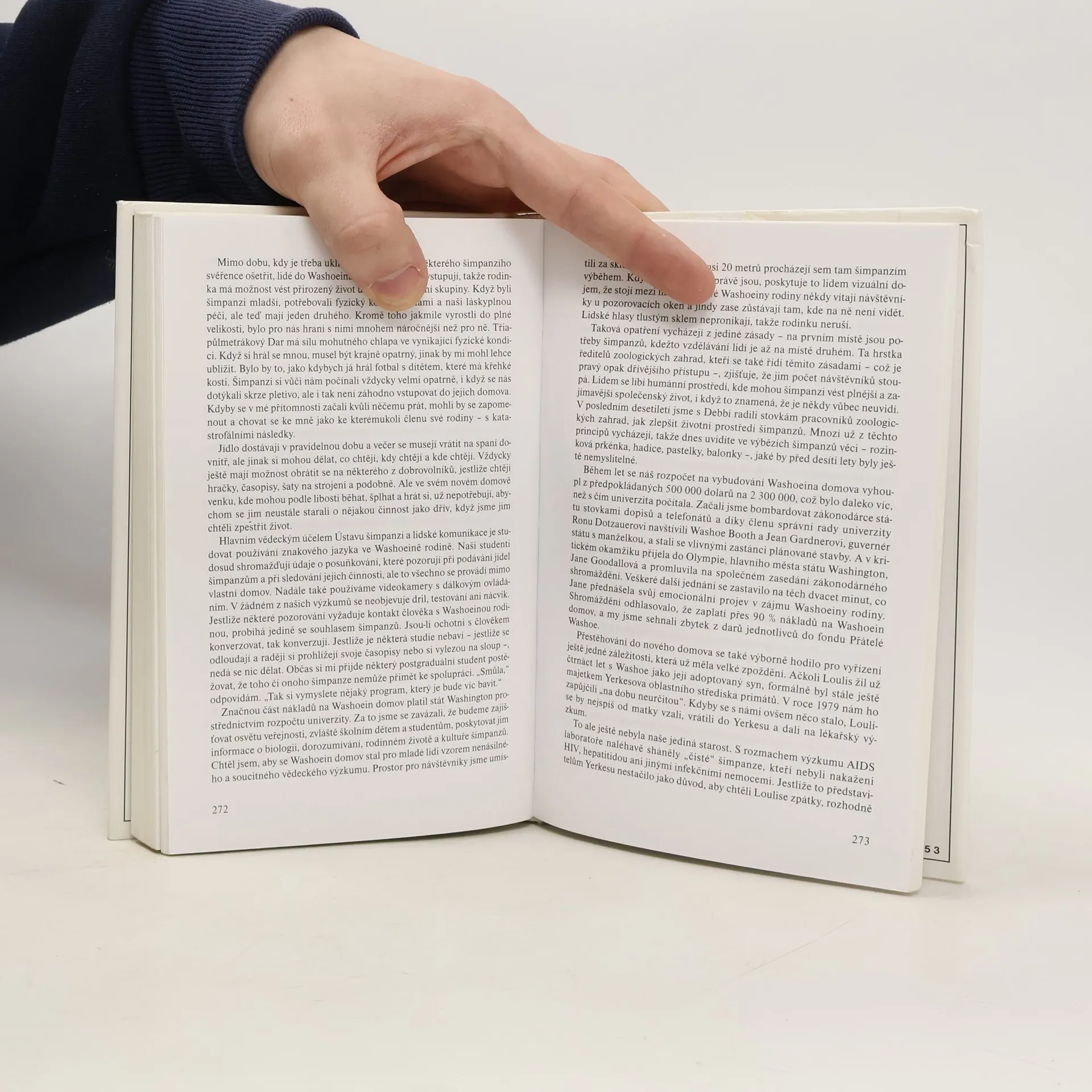 Tato působivá kniha, k níž napsala předmluvu Jane Goodallová, boří umělé bariéry mezi námi lidmi a našimi nejbližšími příbuznými – šimpanzi. Jsou nám blízcí nejen emocionálními projevy, pevnými rodinnými svazky, společenskými strukturami, chováním i dovednostmi, ale i přirozenou inteligencí, a konečně i schopností komunikovat s člověkem prostřednictvím znakového jazyka. Autoři navázali na práci svých předchůdců s šimpanzí slečnou Washoe, což podstatně ovlivnilo jejich životní a profesionální dráhu a dovedlo je i k revolučnímu názoru vyvracejícímu teorii Chomského, že jazyk je dán jenom člověku…... celý text