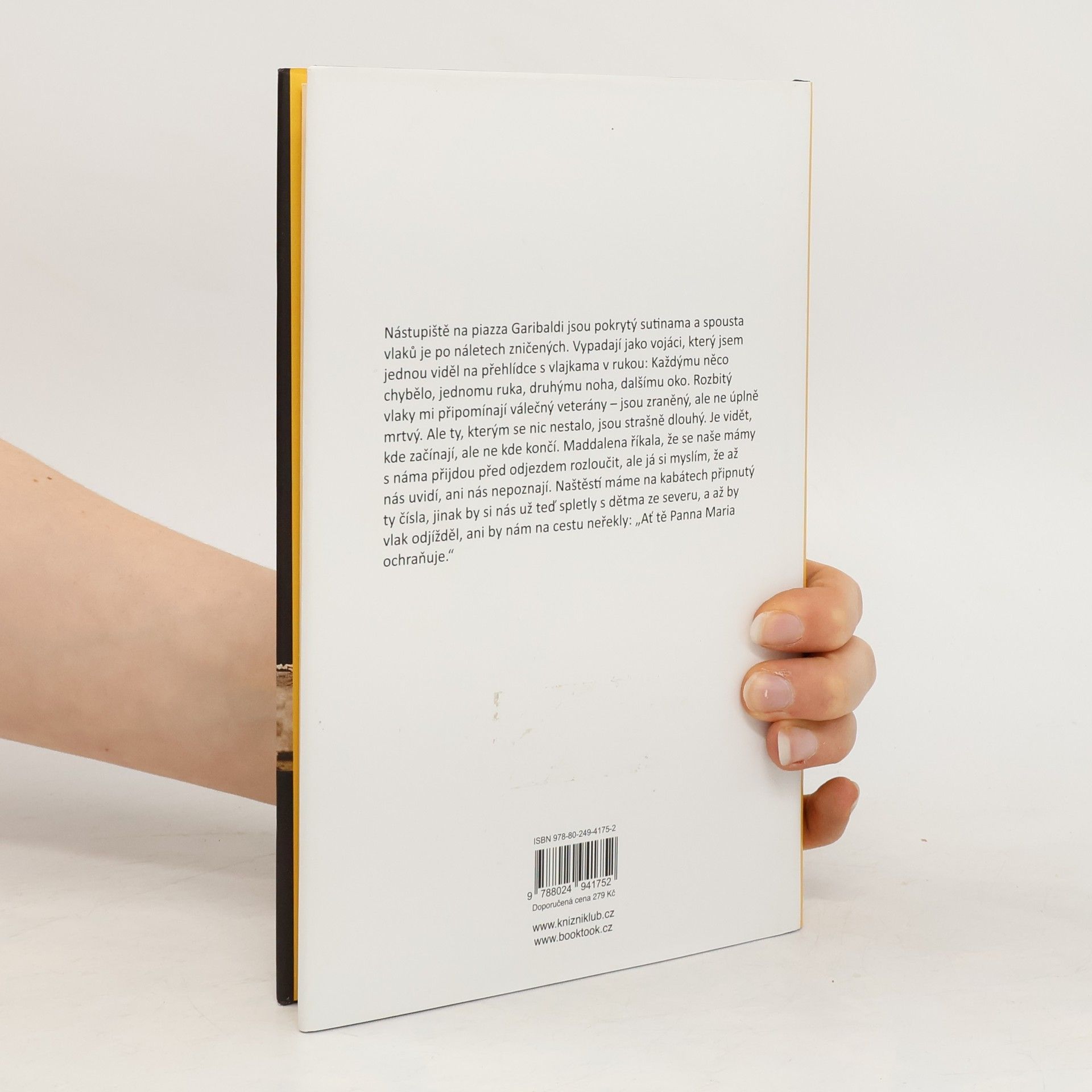 Těsně po druhé světové válce je jih Itálie zbídačený a na pokraji hladomoru. Právě tehdy je zorganizována speciální akce – vybrané děti z nejchudších rodin budou vlakem poslány na sever, kde se o ně postarají místní. Pro desítky dětí to znamená zásadní životní změnu. Cítí strach, nejistotu, ale možná také trochu naděje. Ovšem malý Amerigo Speranza brzy zjistí, že ještě větší výzvou, než odjet na sever a najít novou rodinu, je vrátit se zpátky na jih k té pravé. Strhující příběh o lásce nalezené na tom nejméně pravděpodobném místě i o krutých rozhodnutích, které by neměli podstoupit žádní rodiče.