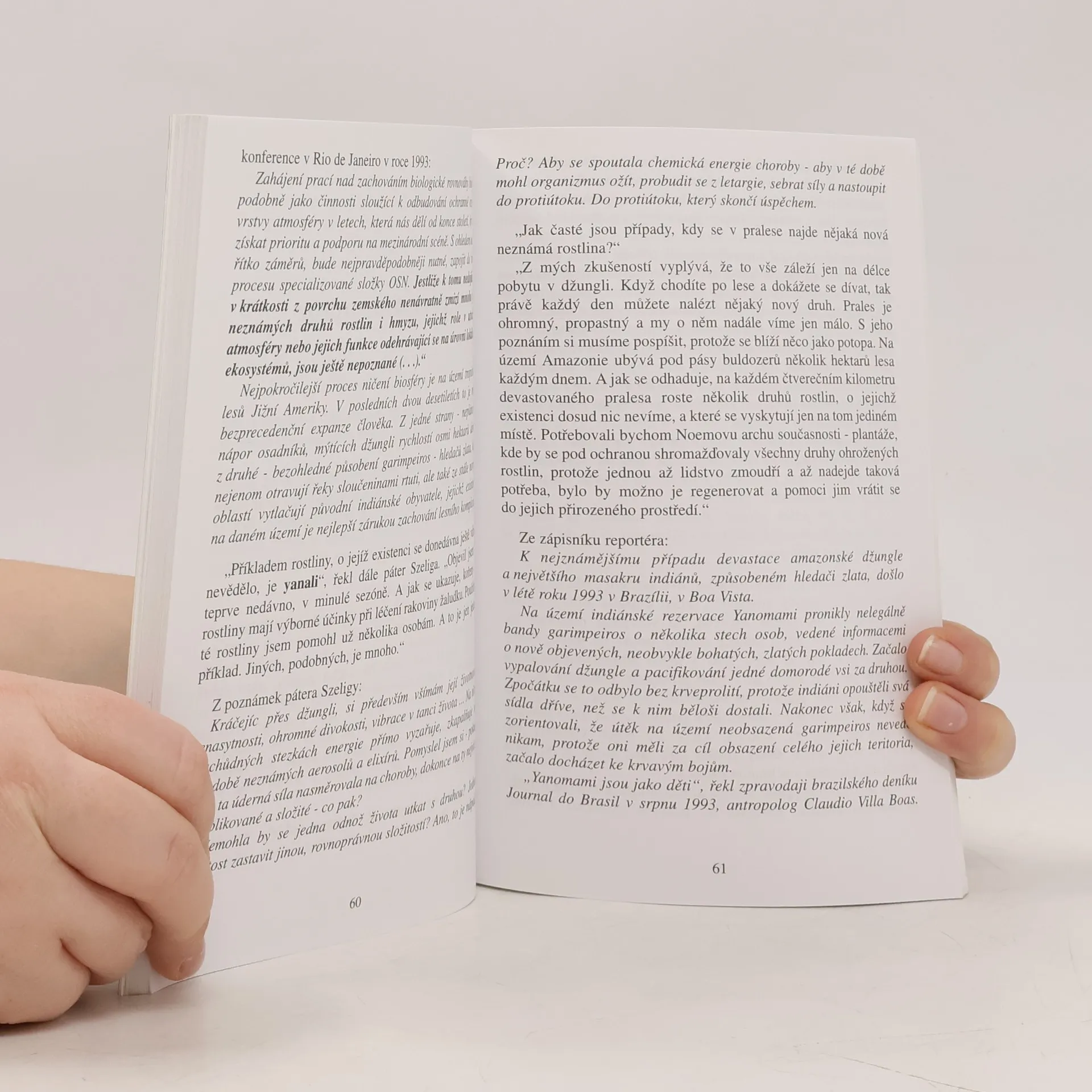 Výklady o protirakovinovém působení tropické liany vilcacora a jejím propagátorovi, polském misionáři Szeligovi. Kniha je klíčem k naději. Její tematika se dotýká každého z nás, někoho z rodiny, přátel, okolí. Civilizační choroby, které nás sužují. Díky té knize nemusí být ani slovo rakovina tak zlověstné. Nemusí být rozsudkem, koncem... Dva polští novináři letí do Peru, kde se v Limě setkávají s polským misionářem páterem Edmundem Szeligou, objevitelem protirakovinových rostlinných preparátů. V knize hovoří páter Szeliga o způsobech léčení a předcházení mnoha chorob, které trápí naší civilizaci, včetně rakoviny a dokonce AIDS. Své lékařské úspěchy dokumentuje a uvádí i názory lékařů z různých klinik. Otvírá nám dveře do největší přírodní lékárny na světě. Páter Szeliga poznával 69 let v amazonské džungli tajemství přírodní medicíny místních indiánů. Desítky let studoval konvenční medicínu a organickou chemii a dosáhl v těchto oblastech impozantních vědomostí. Český překlad knihy je doplněn o zkušenosti polských lékařů získané za jejich pobytu v Peru. Kniha obsahuje léčebné kúry a radí jak mohou získat pomoc i Češi.... celý text