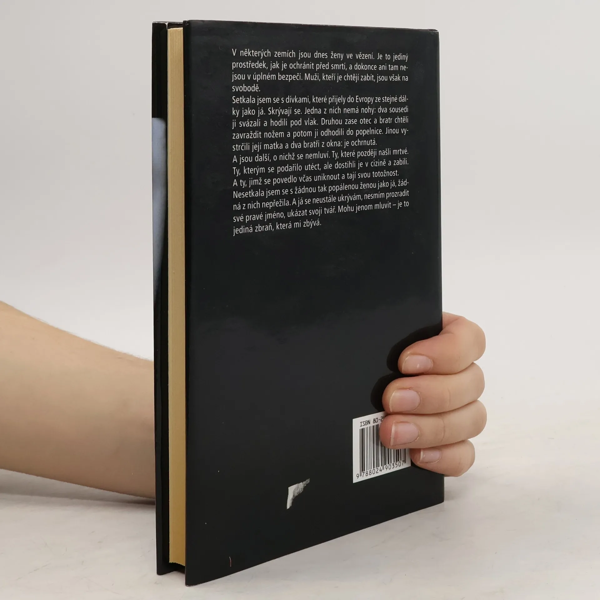 Souad vyrůstala v jordánské vesnici, kde ženy trpí středověkými poměry a nemají žádná práva. Jsou bité, bez vlastního názoru, vzdělání a jen slouží. Jakmile se podívají na cizího muže, riskují smrt. Souad porušila tento řád, když se zamilovala. Když otěhotněla, mladík ji opustil a ona se bála o svůj život, neboť její sestra byla zavražděna kvůli "cti". Rodina se rozhodla, že je bezcenná a musí být odstraněna. Úkolu se ujal švagr, který ji polil benzinem a zapálil. Souad však přežila, ale v nemocnici ji lékaři a ošetřovatelky opustili, a ona pomalu umírala. Nakonec jí pomohla pracovnice humanitární organizace, která ji po mnoha peripetiích odvezla do Švýcarska. Po operacích a dlouhém léčení se Souad naučila znovu žít a založila rodinu. Po dvaceti letech se rozhodla sdílet své zážitky. Nepodsouvá vinu ostatním, chápe, že takový je život lidí, kteří neznají nic jiného. Tato kniha je silným svědectvím ženy, která se rozhodla prolomit tabu a promluvit za ty, které nemohou.
