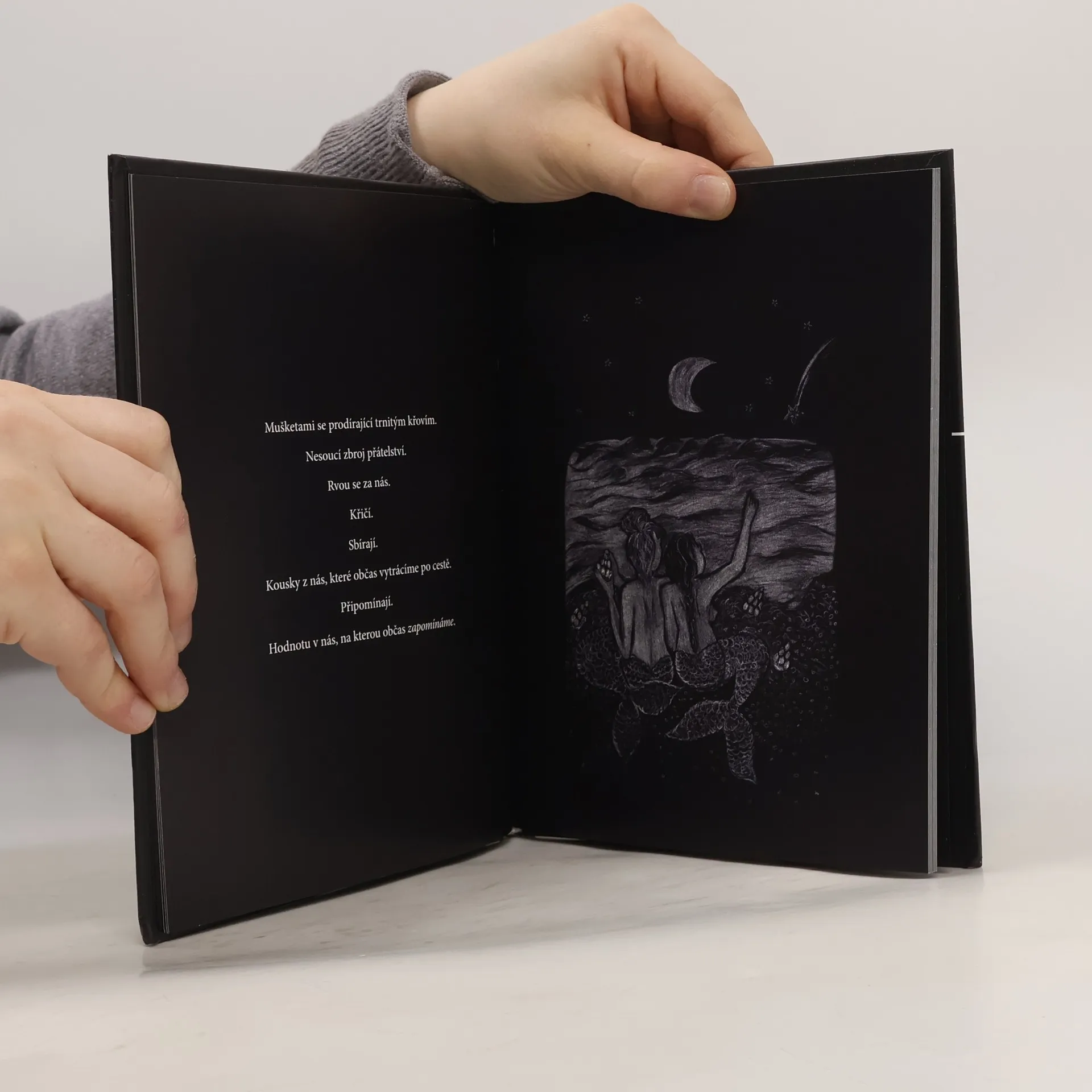 Věnováno všem dospělým, které neopustila dětská mysl. Těm, kteří balancují. Těm, kteří se v sobě nevyznají. Aby nepřestávali bojovat .. a hledat .. a ztrácet .. a nacházet se .. a rvát se. Věnováno tobě. Abys nehledal hrdinu v pohádkách, ale našel ho v sobě.