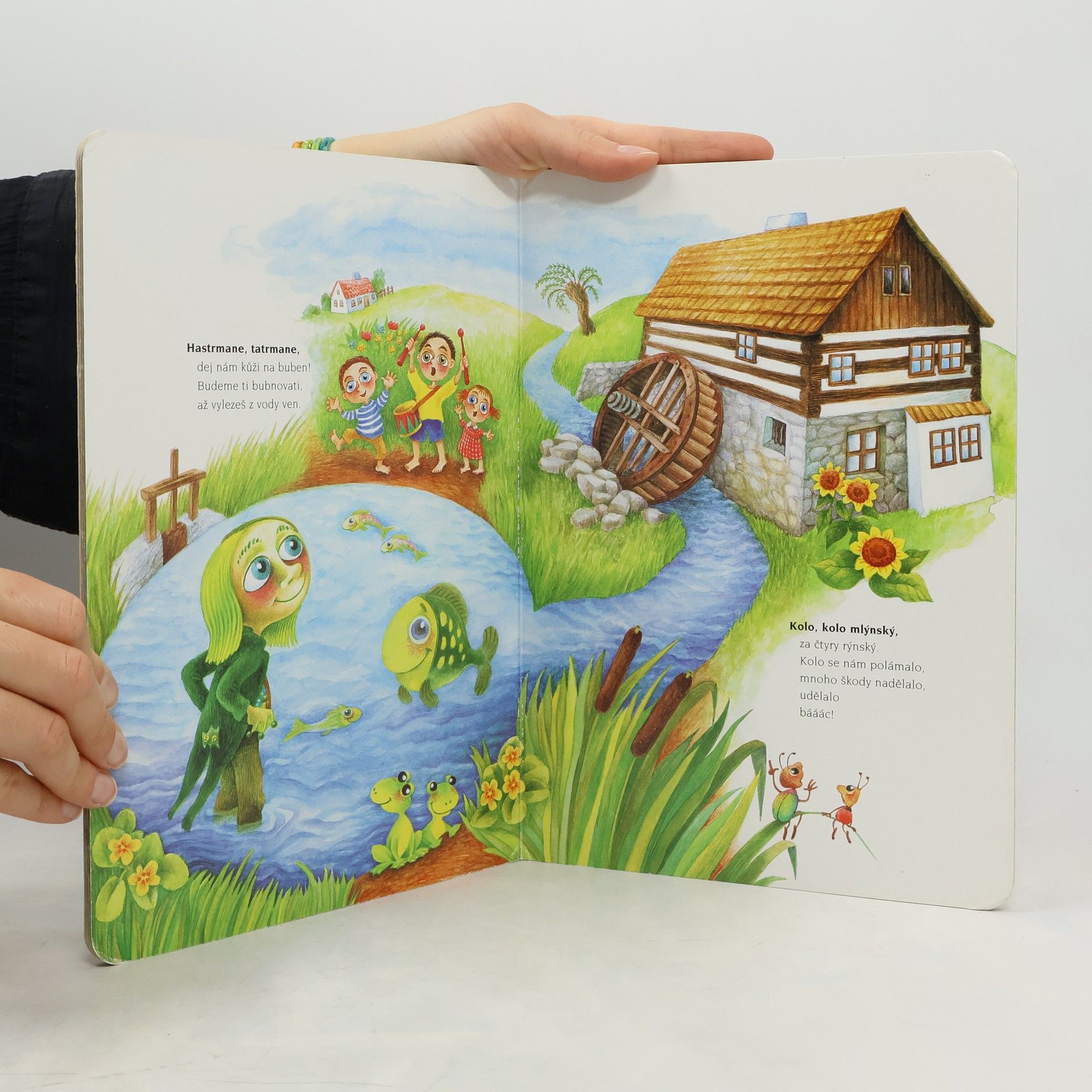Vkusně ilustrované leporelo s výběrem nejkrásnějších českých říkadel a písniček, jako jsou Já do lesa nepojedu, Náš táta šel na houby nebo Žežuličko, kde jsi byla...