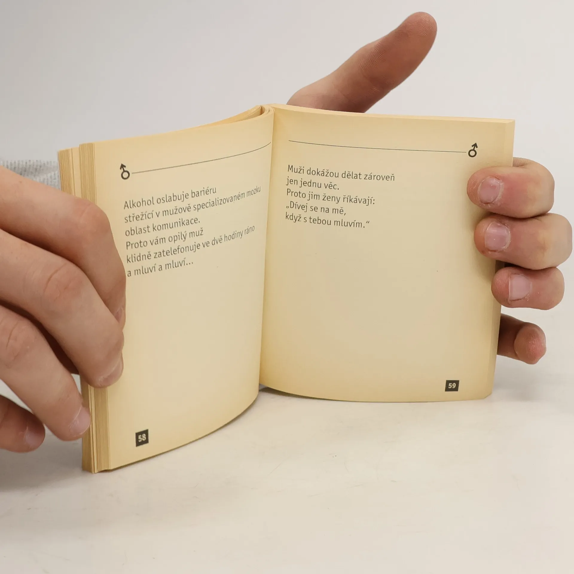 Humorné dílko autorů knihy Proč muži neposlouchají a ženy neumí číst v mapách vychází právě z tohoto světového bestselleru.Allan a Barbara Peaseovi na základě vědeckých poznatků objasňují myšlení a chování mužů. Na stránkách této knížky najdete humor i výroky k zamyšlení.Publikace se stane skvělým literárním společníkem pro ženy, které se domnívají,že o opačném pohlaví vědí vše, i pro ty, které by si přály, aby tomu tak bylo.