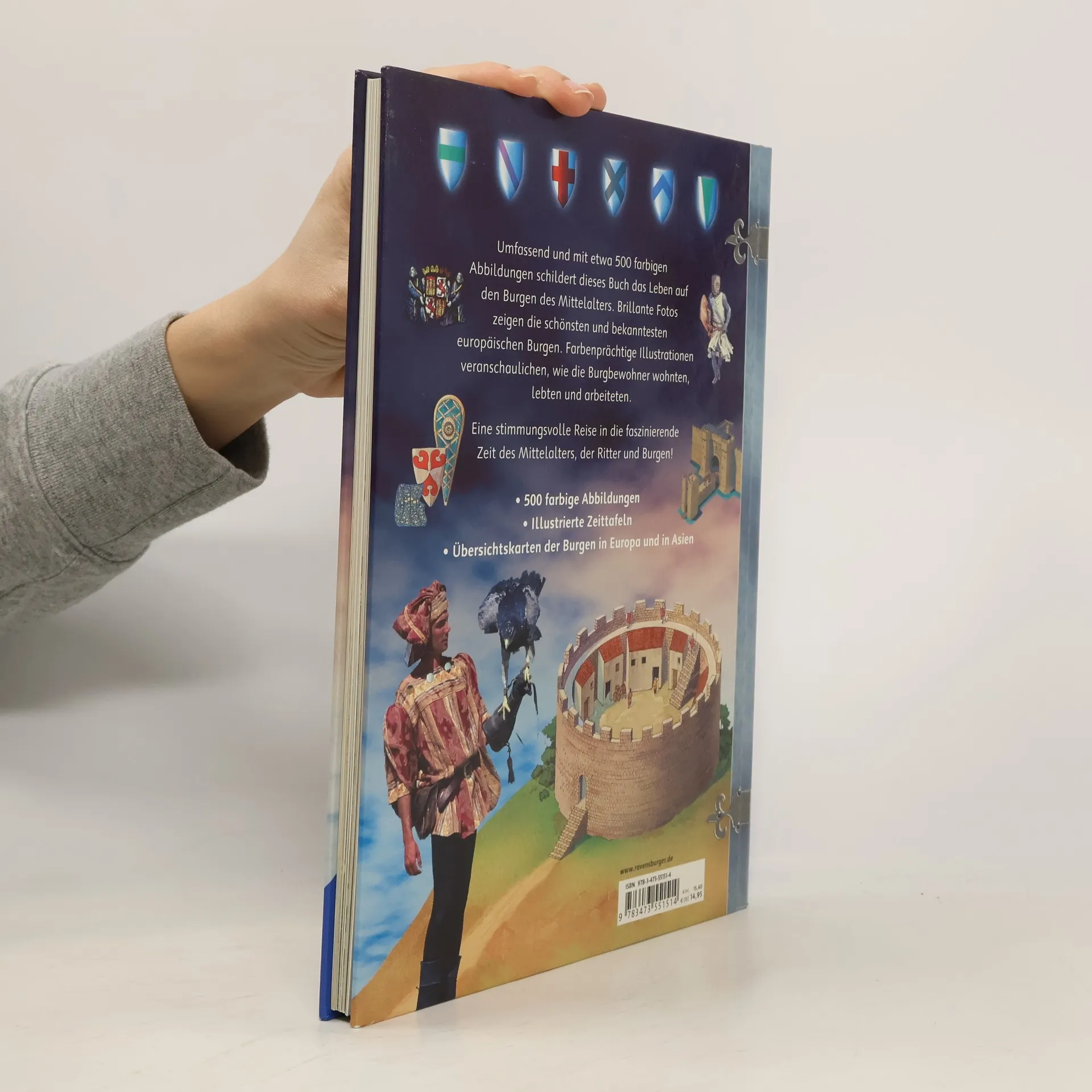 Dieser farbenprächtige Band mit einer Vielzahl von Fotos und Illustrationen, Zeit- und Übersichtstafeln zeigt das Leben auf einer Ritterburg: Alltag und Haushalt der Burgbewohner, Handwerk, höfische Kultur und Rittertum, sowie verschiedene historische Burgtypen. Das Leben früher und heute ist ein zentrales Wissensgebiet im Sachkundeunterricht ab der 3. Klasse. Ritter und Burgen gehören dabei zu den beliebtesten Themen. Mit diesem Prachtband wird eine längst vergangene Zeit wieder lebendig.